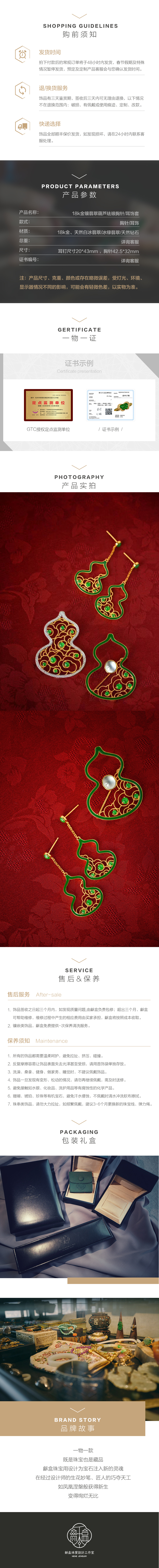 龢盒原创 18k金镶翡翠葫芦珐琅胸针/耳饰套 胸针耳环
