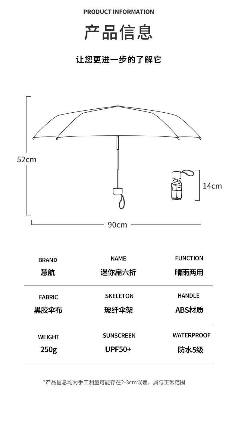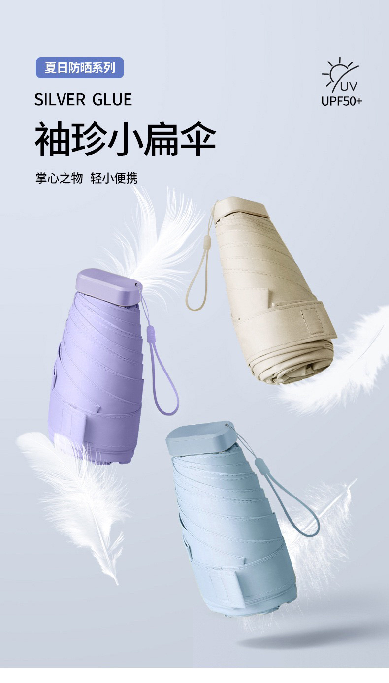 迷你便携六折晴雨遮阳伞防紫外线黑胶防晒太阳伞女卡包伞