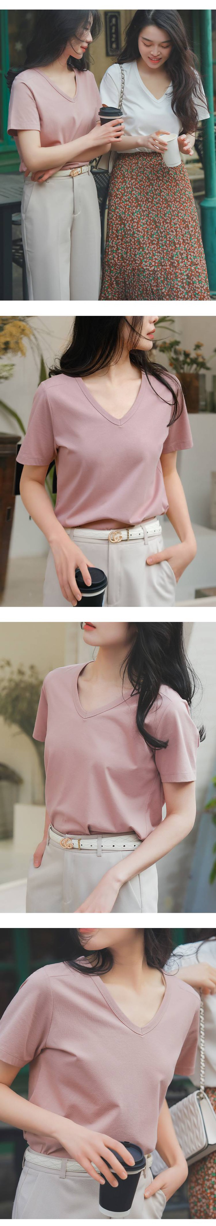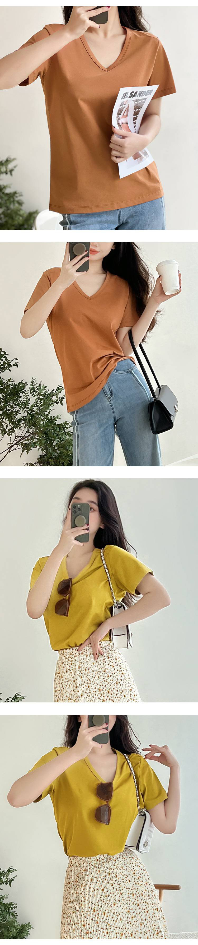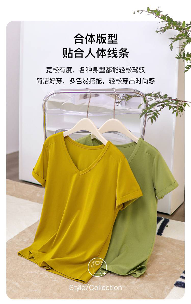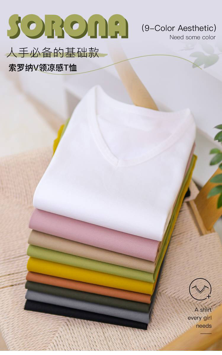 女士V领索罗纳凉感科技面料短袖