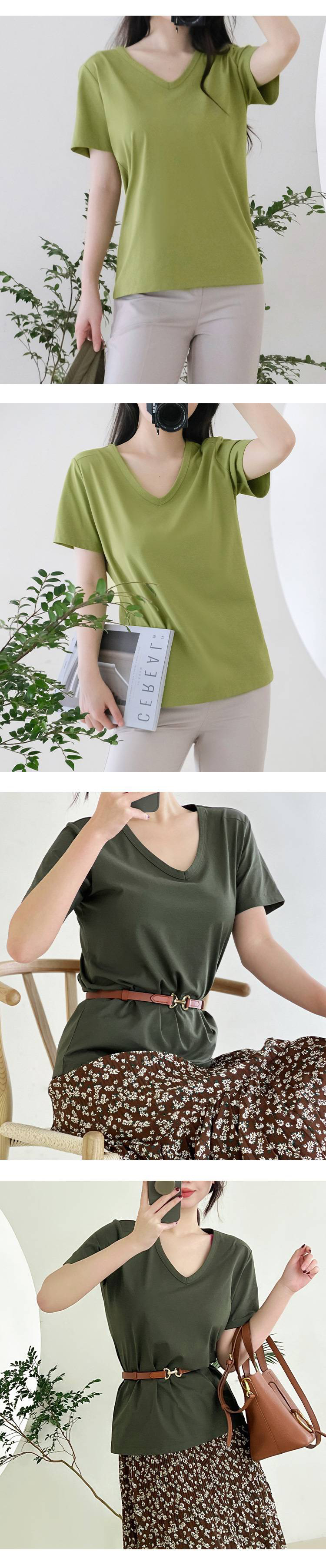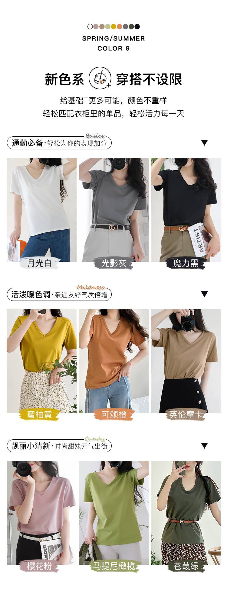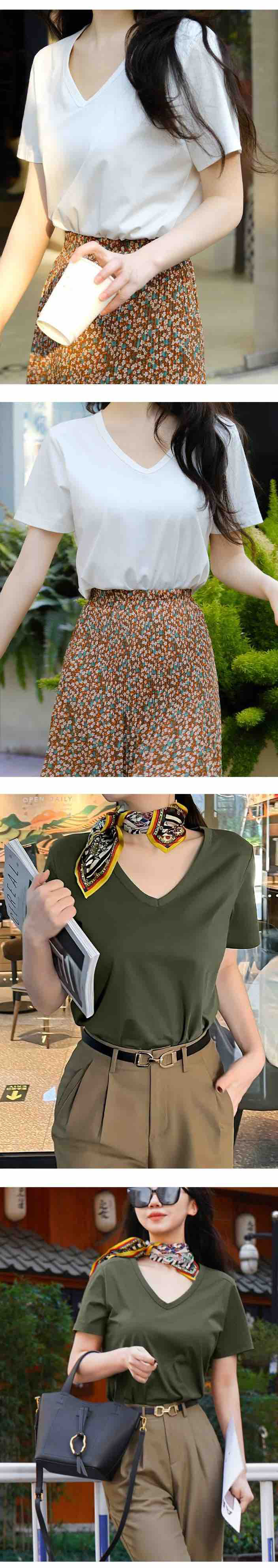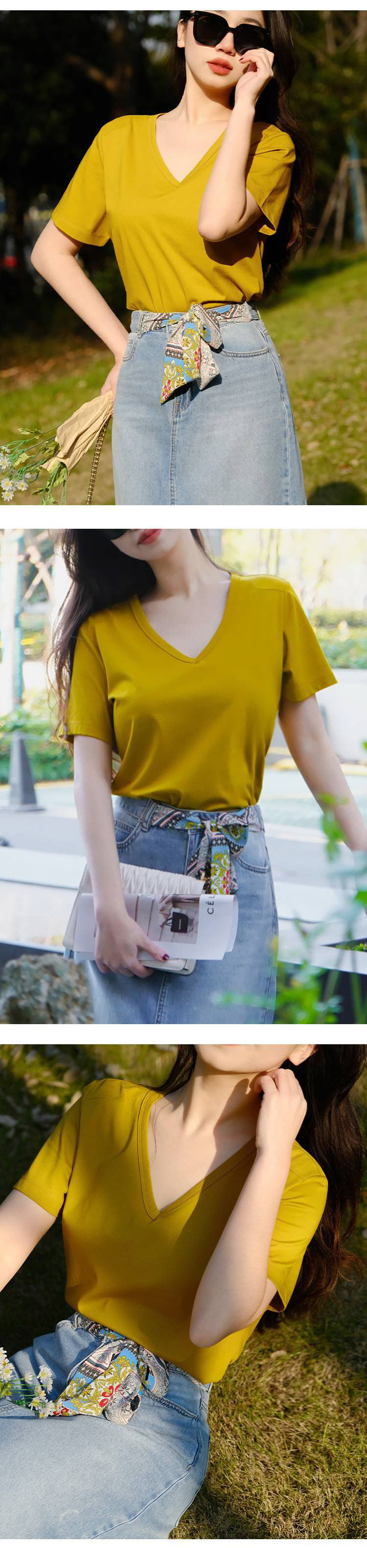 女士V领索罗纳凉感科技面料短袖