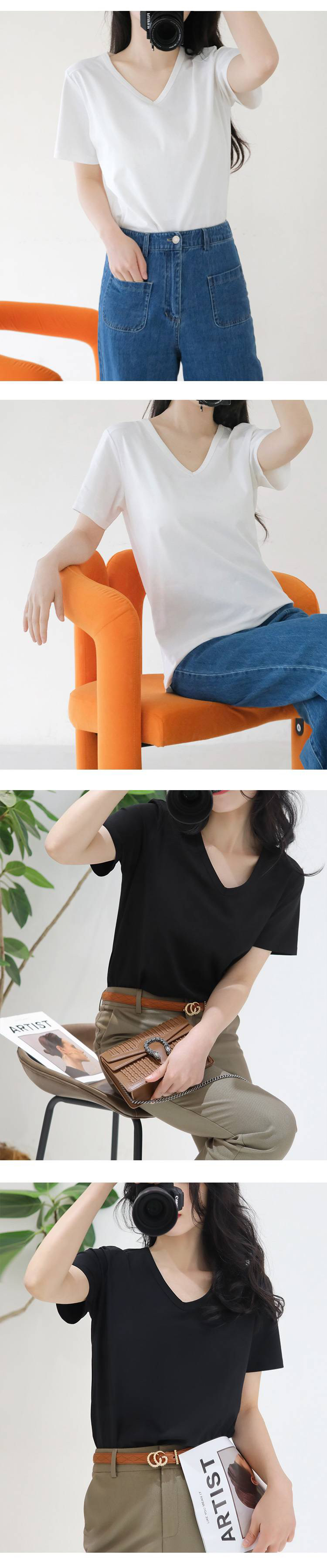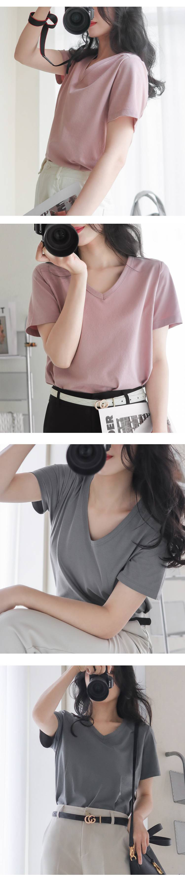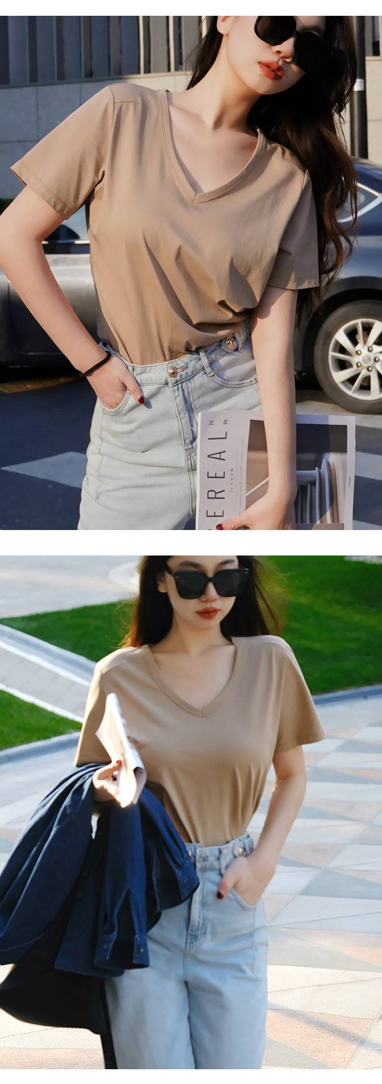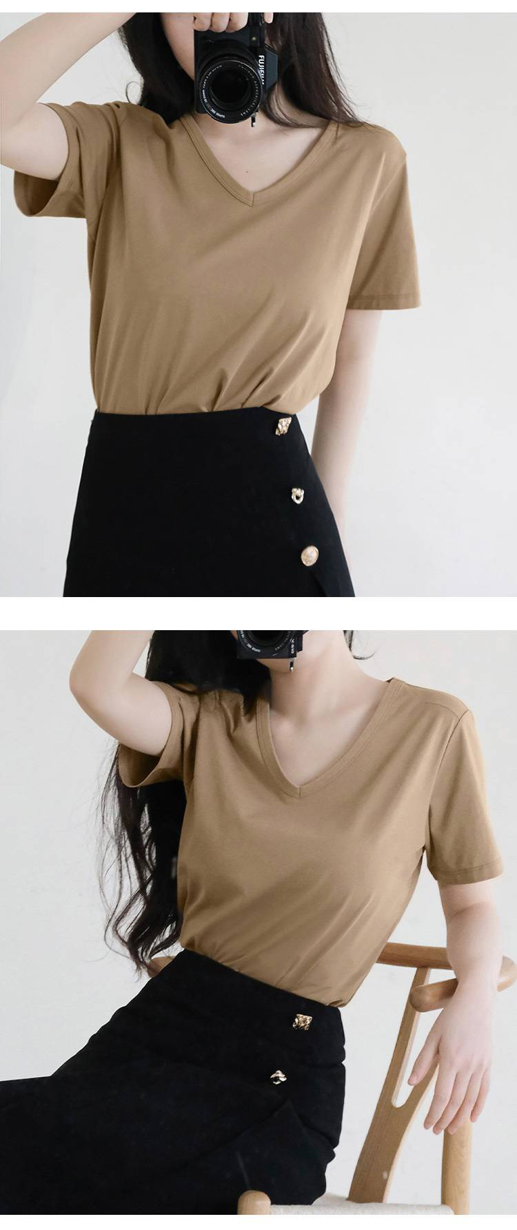 女士V领索罗纳凉感科技面料短袖