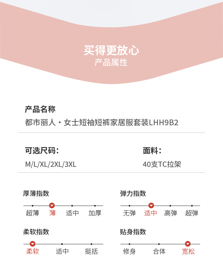 都市丽人女士棉质短袖套装薄40支TC拉架亲情蜜语短袖类LHH9B2
