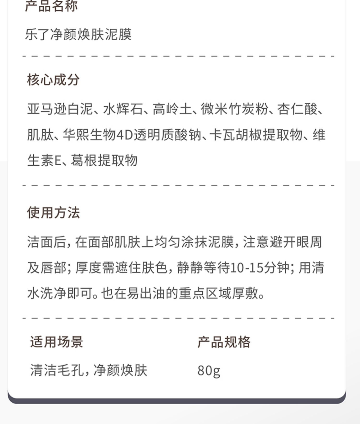 【品名】indie pure乐了净颜焕肤泥膜80g