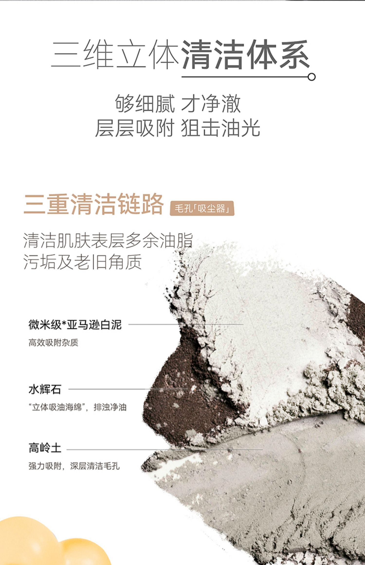 深层清洁>>>亚马逊白泥+高岭土+杏仁酸