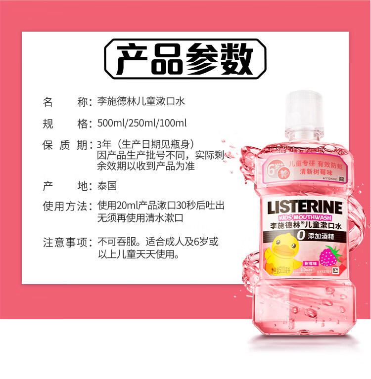 李施德林儿童漱口水(树莓味)250ml/瓶