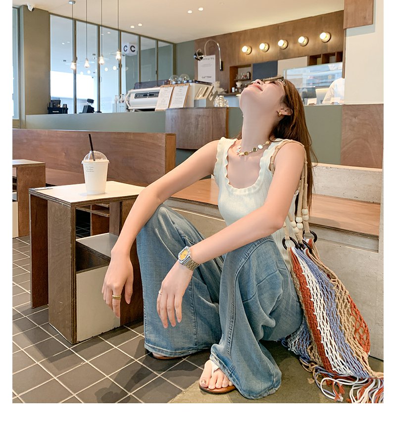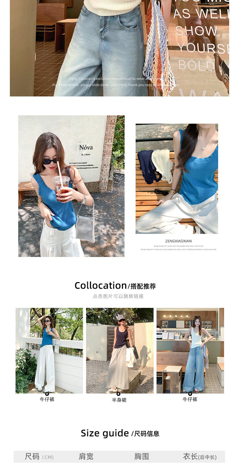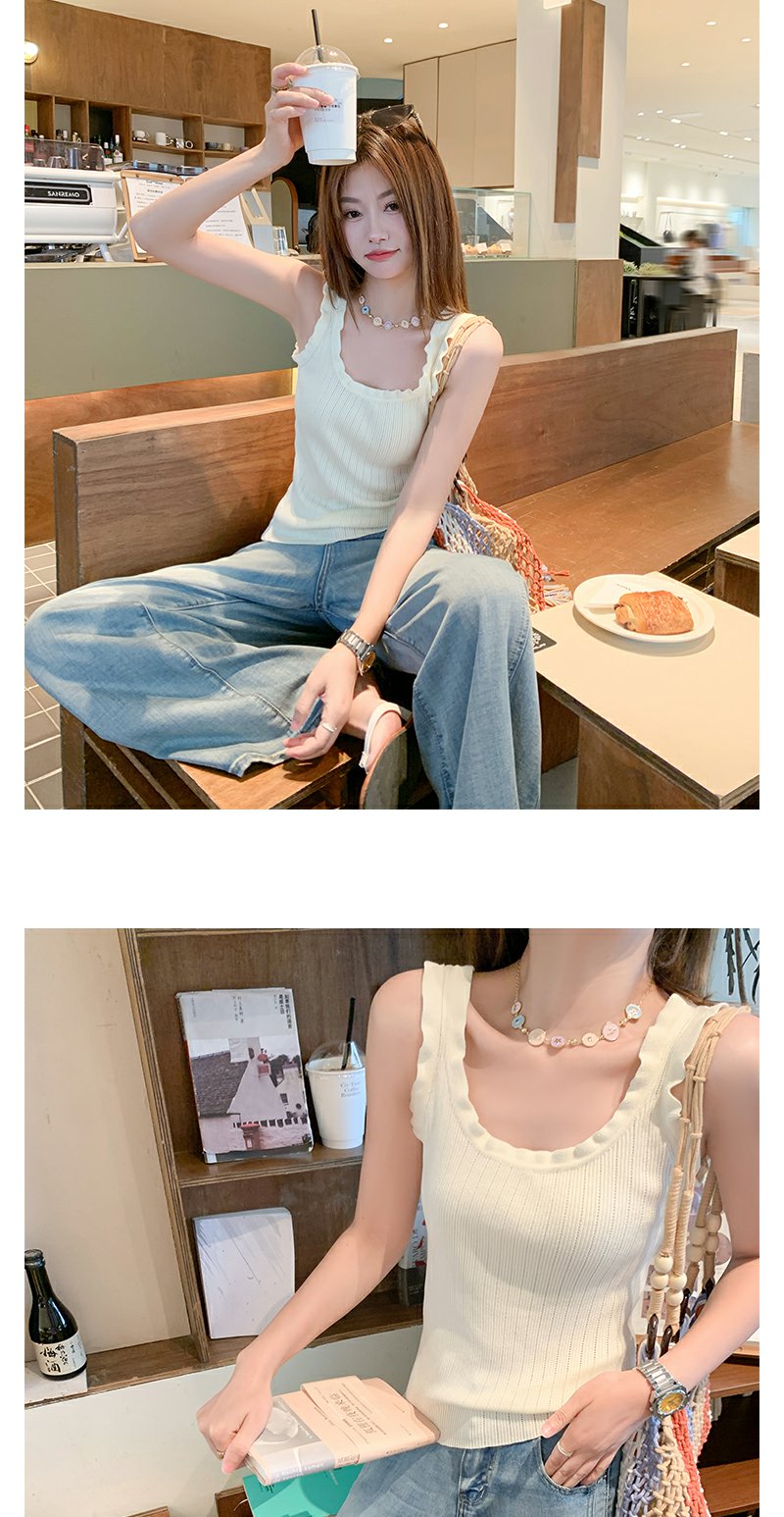 <曾小咸推荐>韩系3色木耳边修身显瘦吊带背心