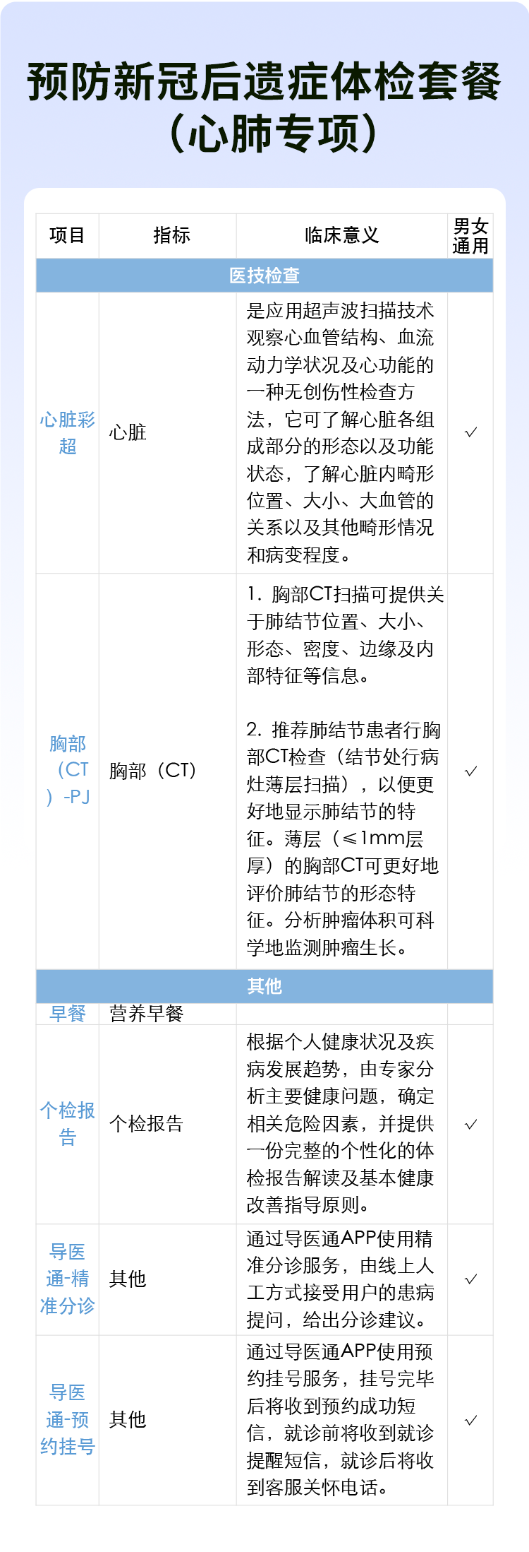 心肺专项检查 肺部CT+心脏彩超 适用国宾/国宾VIP/卓悦/君安
