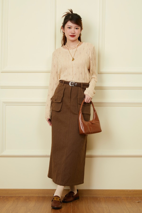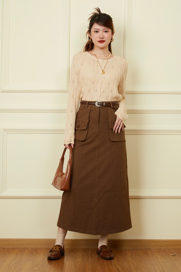 WHO KNOWS 焦糖咖色工装半裙 18652