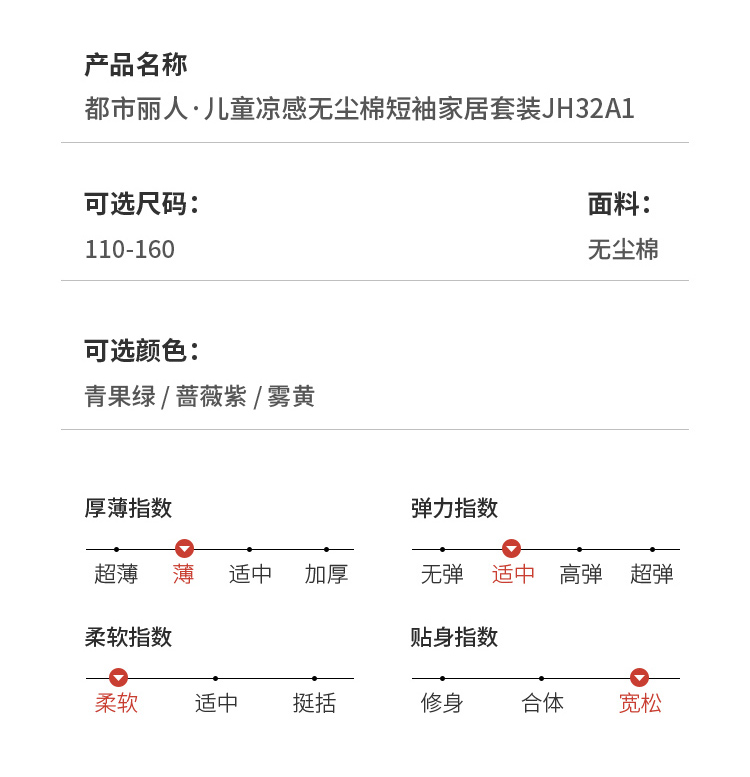 都市丽人眯雅佳凉感无尘棉薄短袖家居服睡衣JH32A1