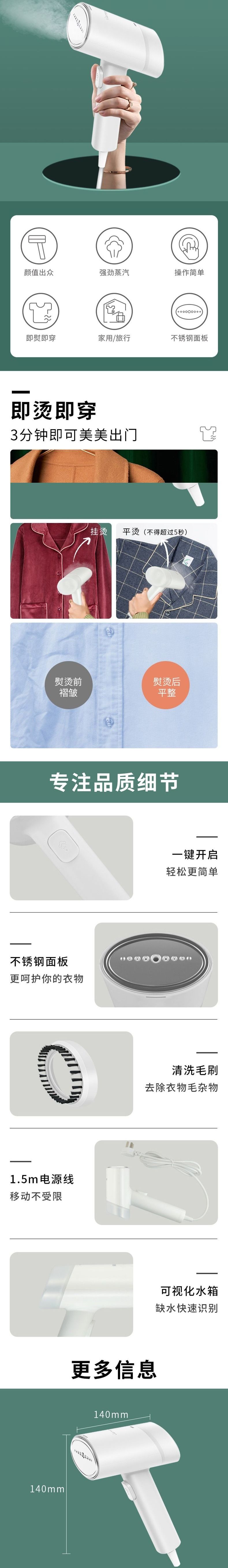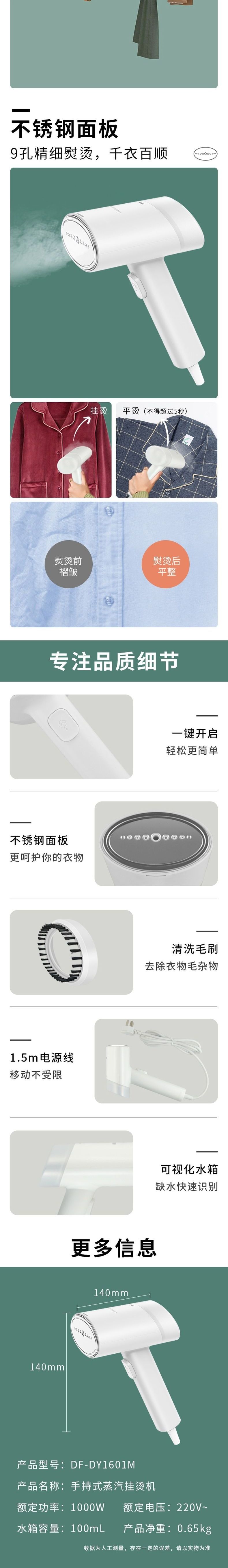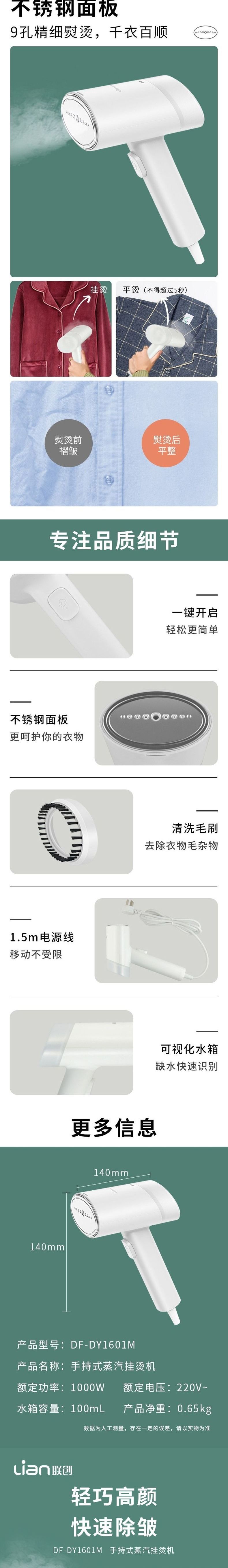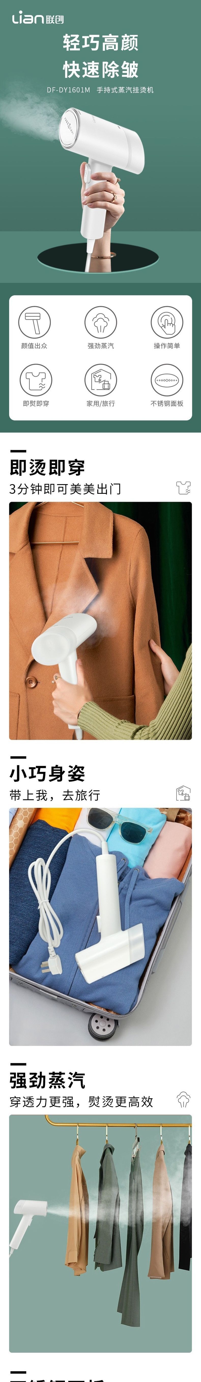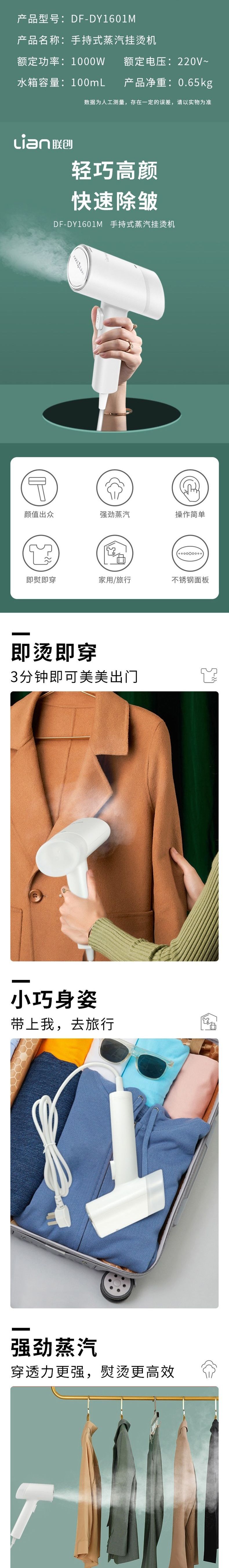 联创 手持挂烫机 DF-DY1601M 便携熨烫机迷你蒸汽刷旅行用