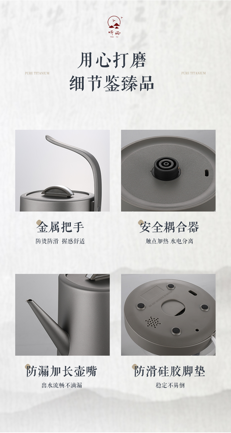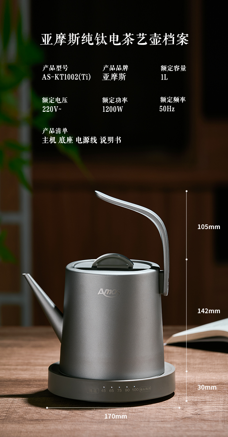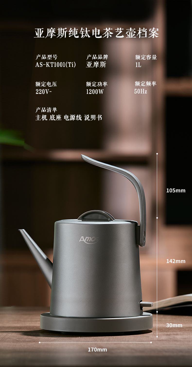 【钛茶艺壶 快速烧水】亚摩斯纯钛电热水壶办公室煮茶器养生壶烧水壶家用泡茶功夫茶具电茶炉AS-KT1001(Ti)/AS-KT1002(Ti)