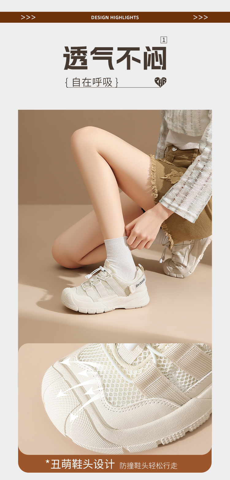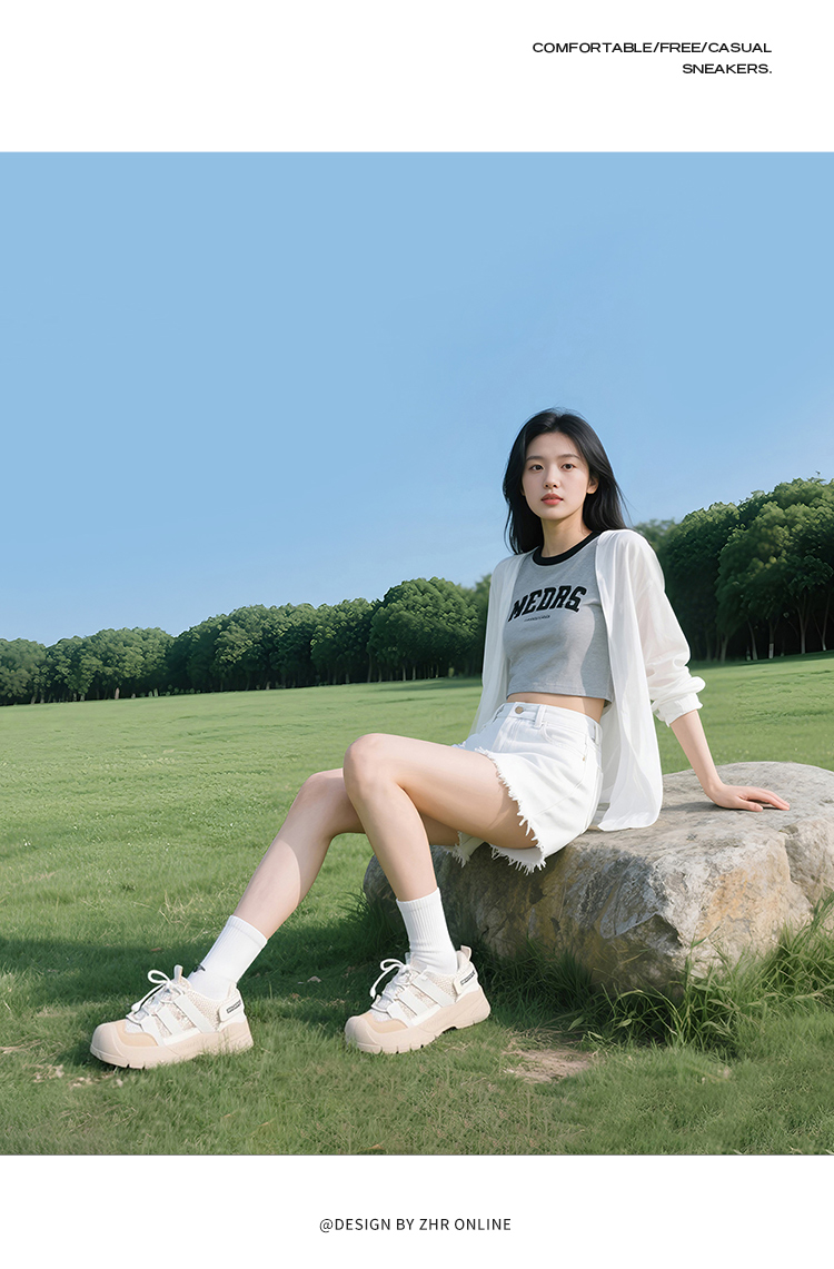 ZHR休闲鞋女款2025秋季度假穿搭户外登山透气软底徒步溯溪老爹鞋