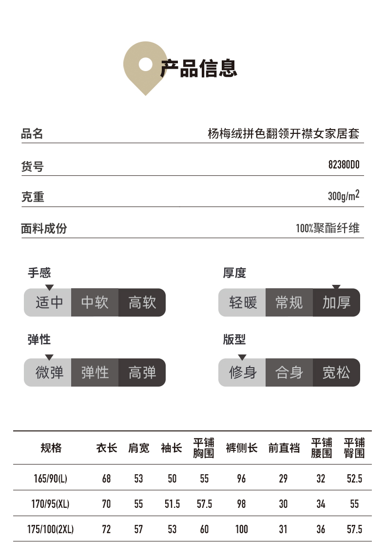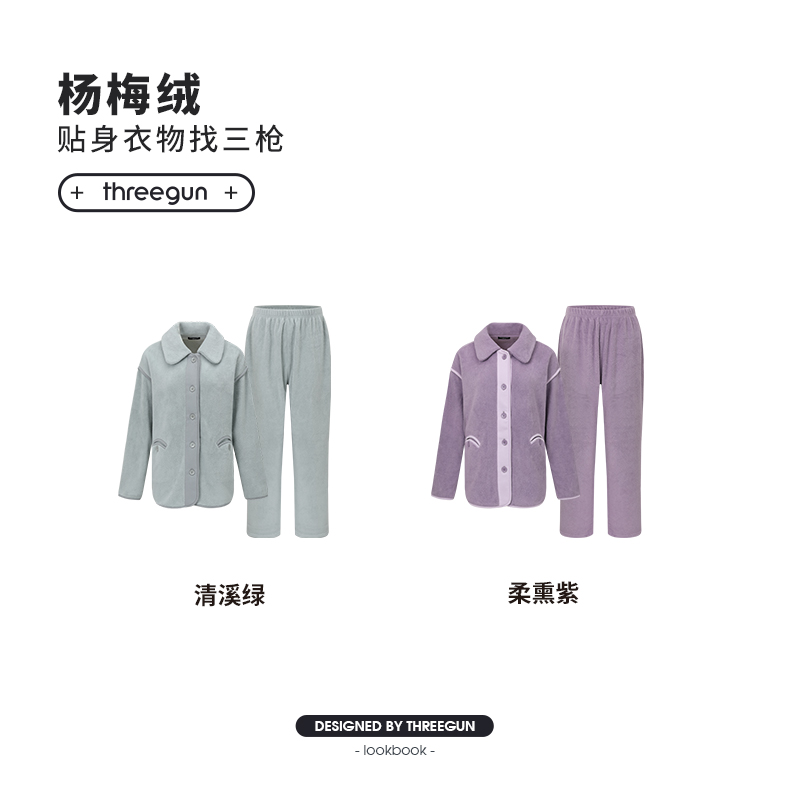 Threegun三枪 杨梅绒拼色翻领开襟女家居套-82380D011