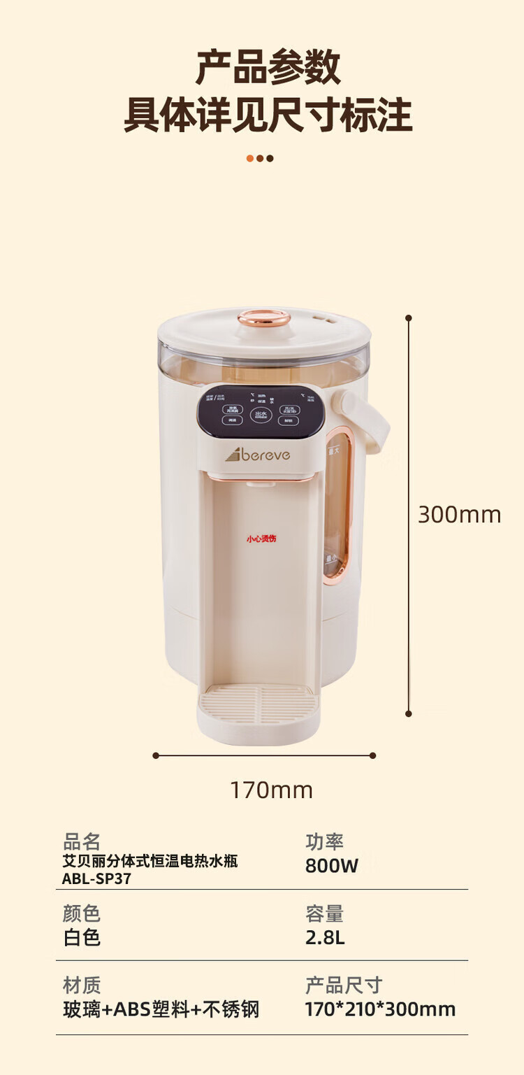 【小家电】艾贝丽分体式恒温电热水瓶杏色 ABL-SP37 HF