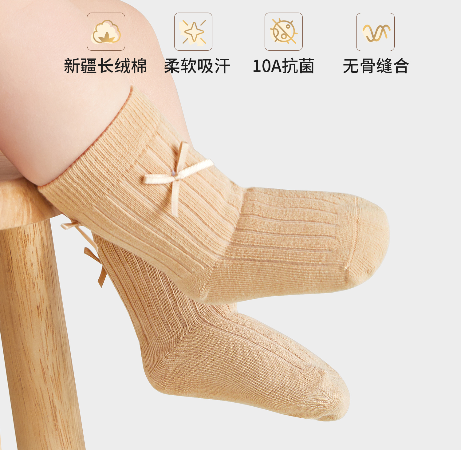 科巢新生儿纯色婴儿袜子秋冬纯棉袜a类0到3月宝宝袜无骨不勒腿
