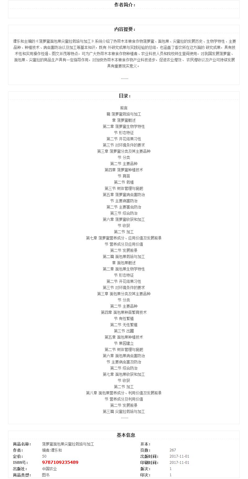 菠萝蜜面包果尖蜜拉栽培与加工【官方正版】