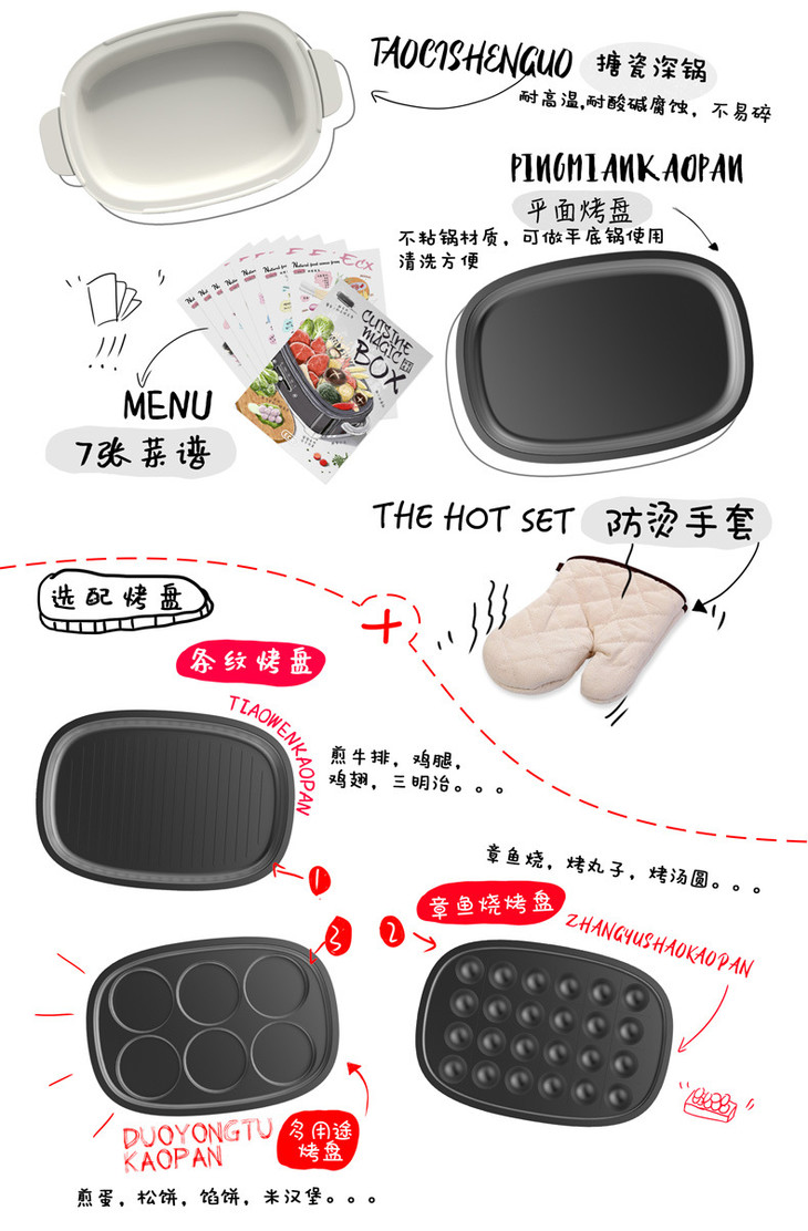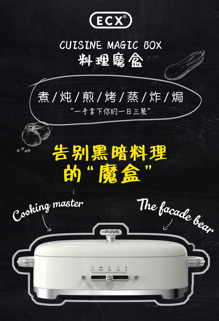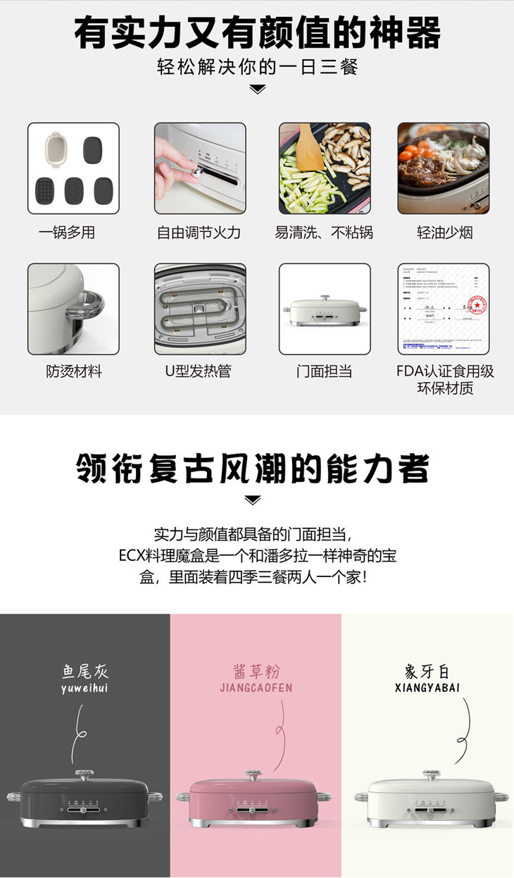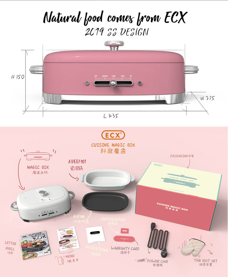 ECX多功能无烟火锅料理机家用电烧烤炉锅网红烤肉锅日本(不支持无理由退换)[福利品]
