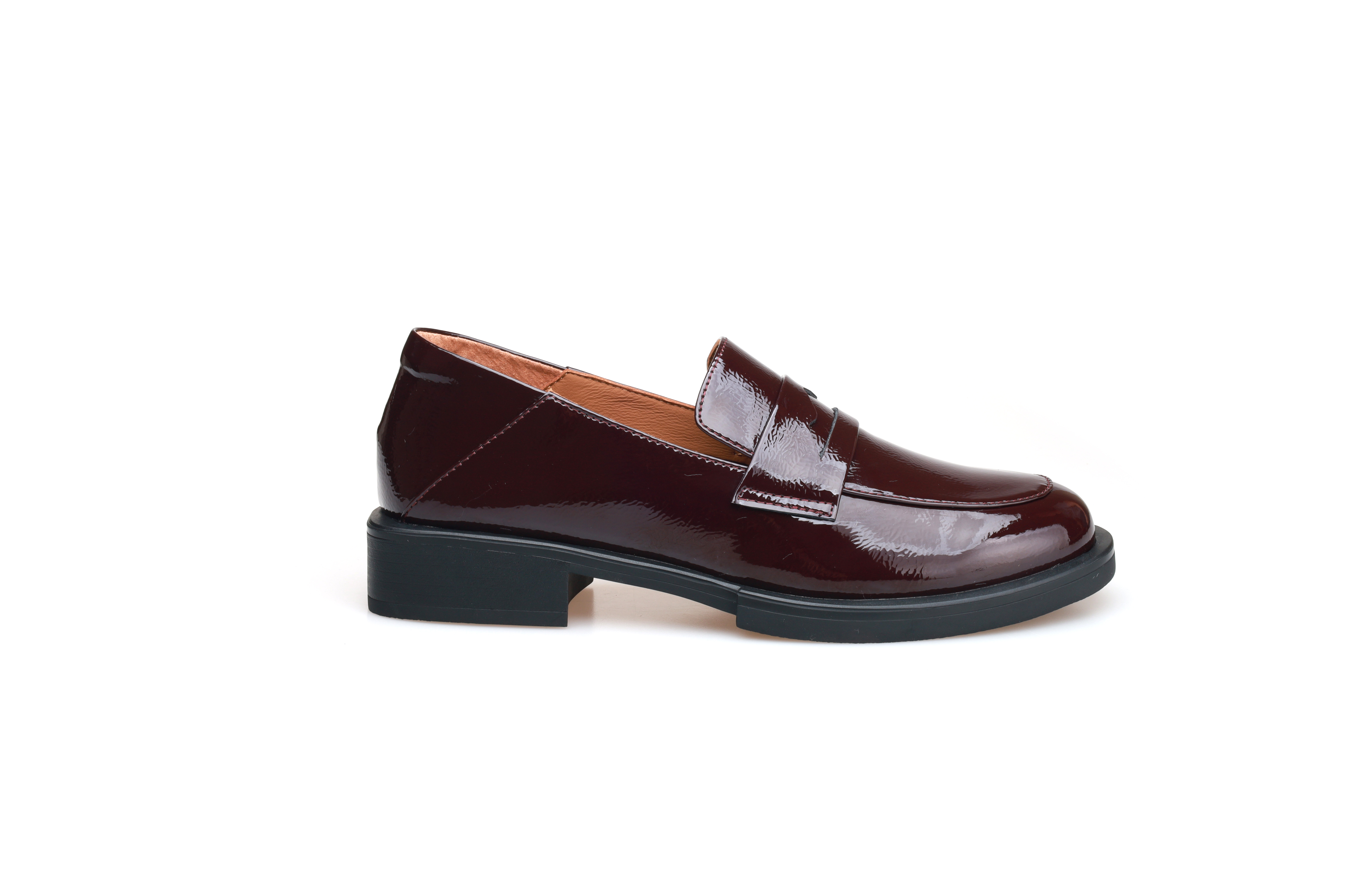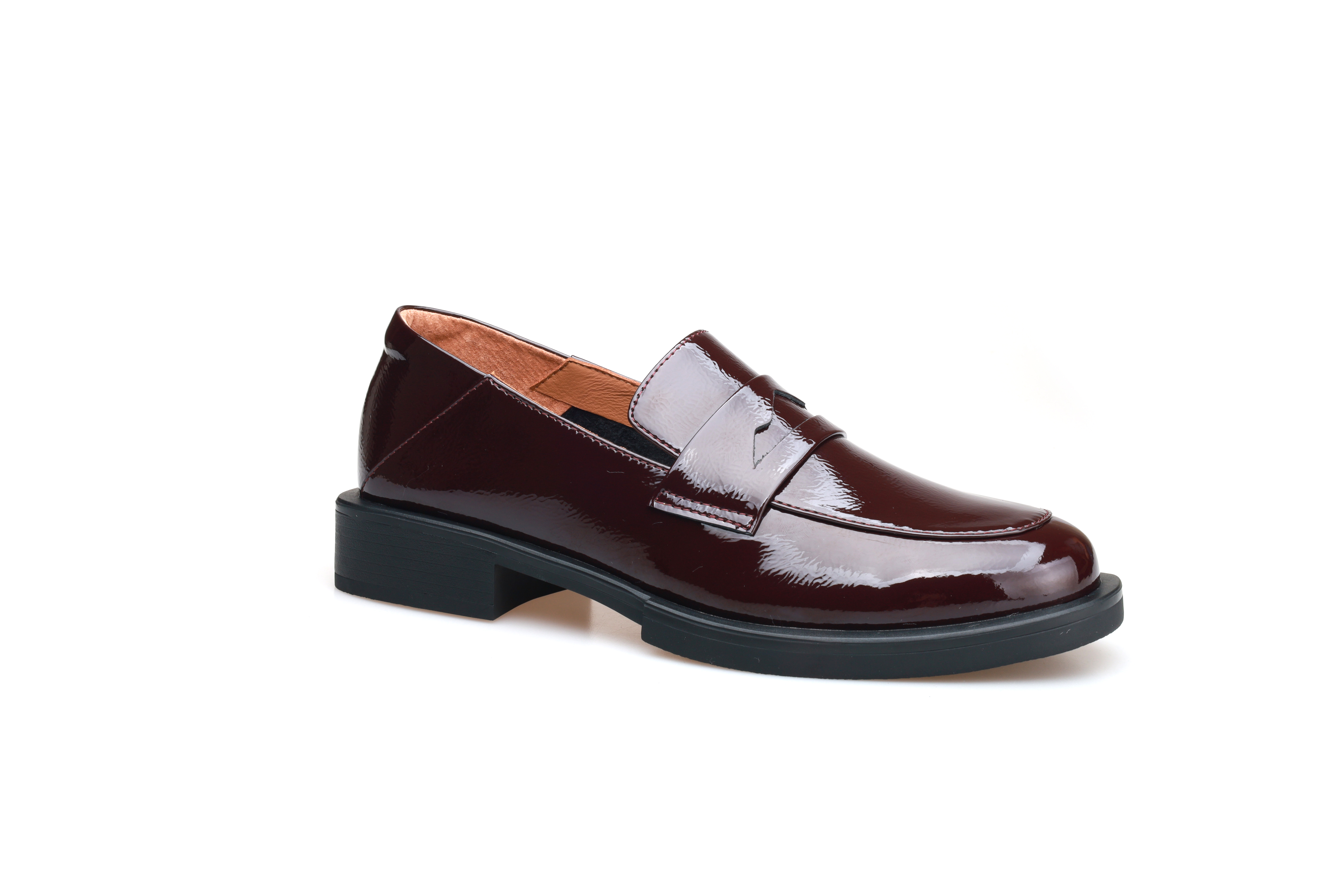 豪麟名鞋奥莱迪嘉女鞋乐福鞋牛移膜革DJYRA52WS051酒红色 原价1960元
