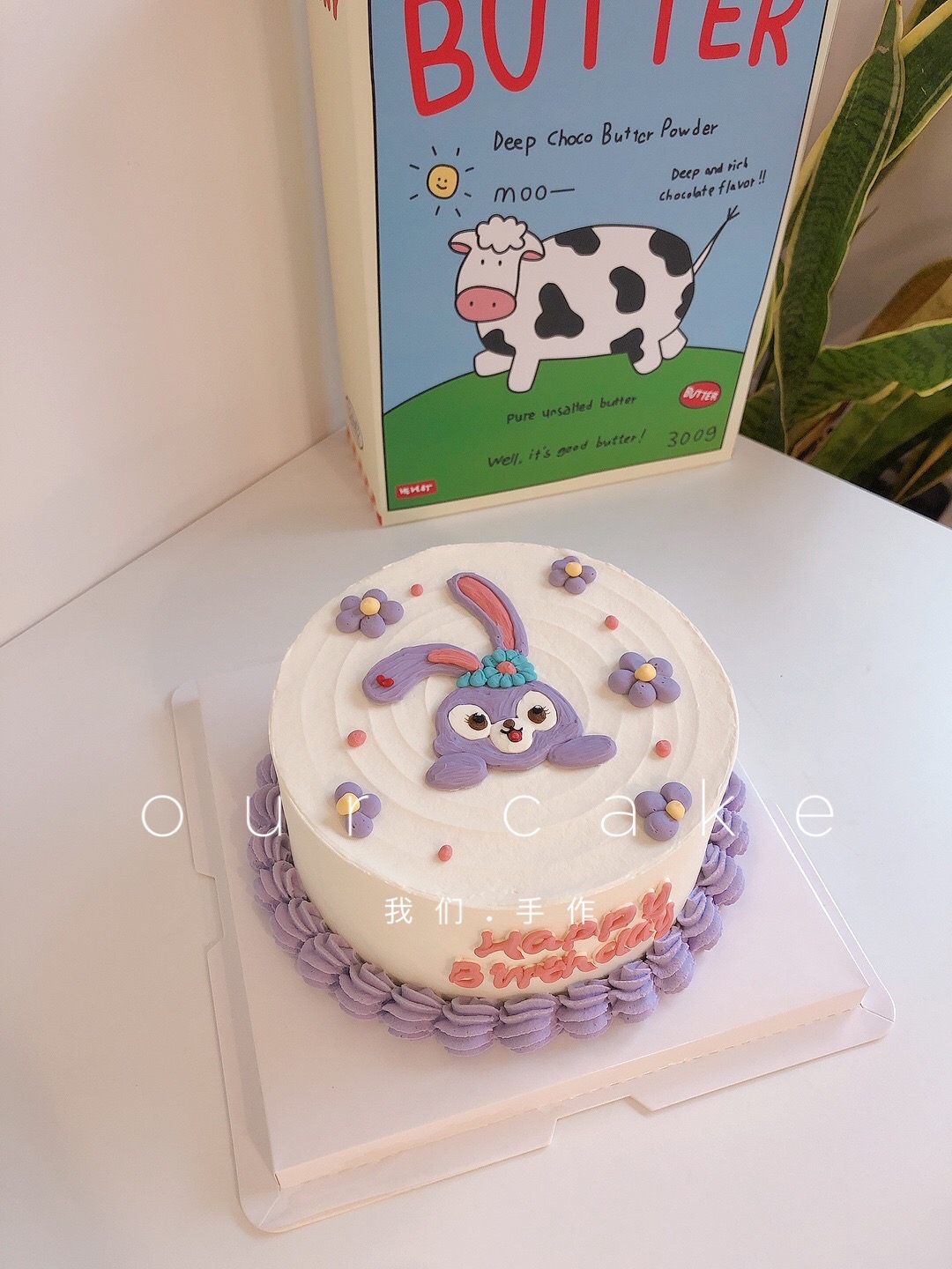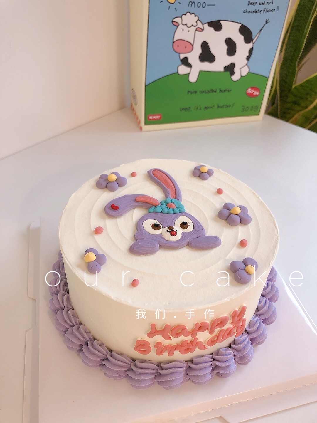 手绘星黛露兔子复古蛋糕-低糖处理无添加