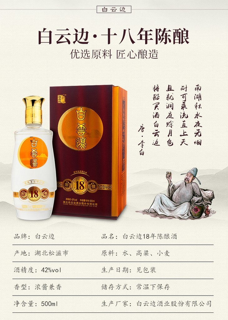 【新品上市】白云边新18年【浓爽】500ml 42度 浓爽十足 陈年味道