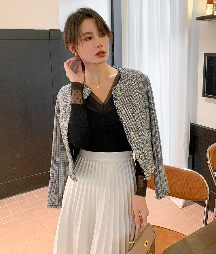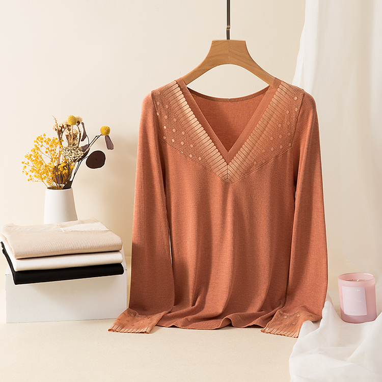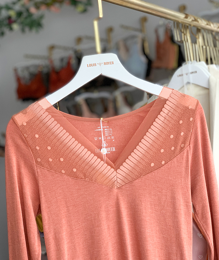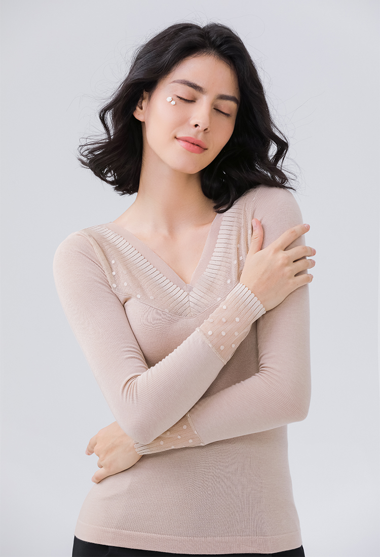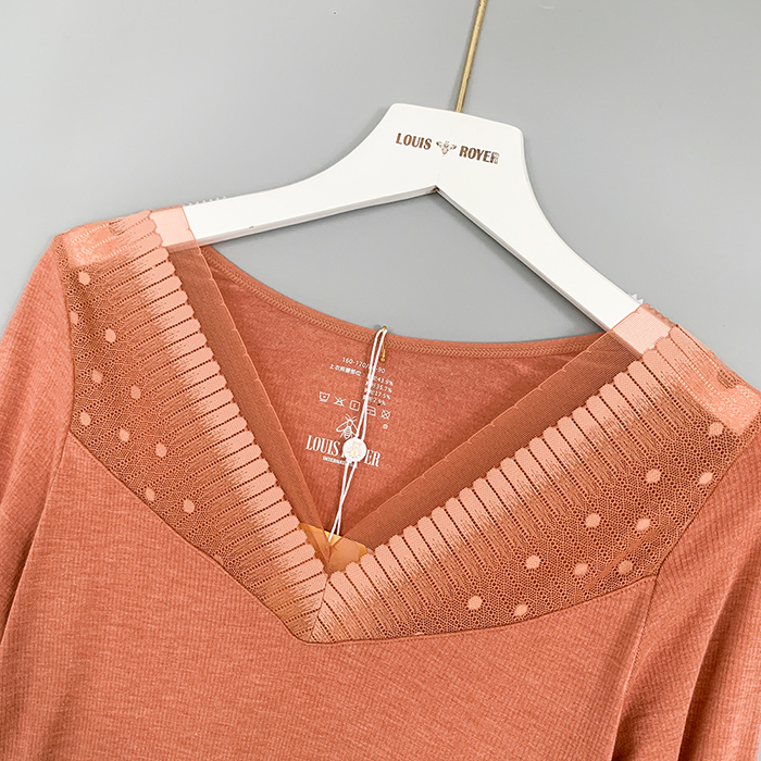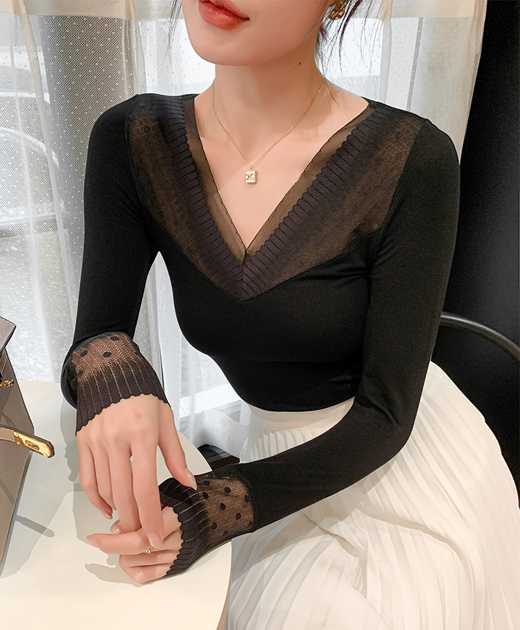 ✔大V领口搭配蕾丝花边,显露修长的颈部线条,内搭外穿也很时髦!!