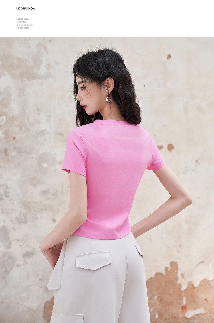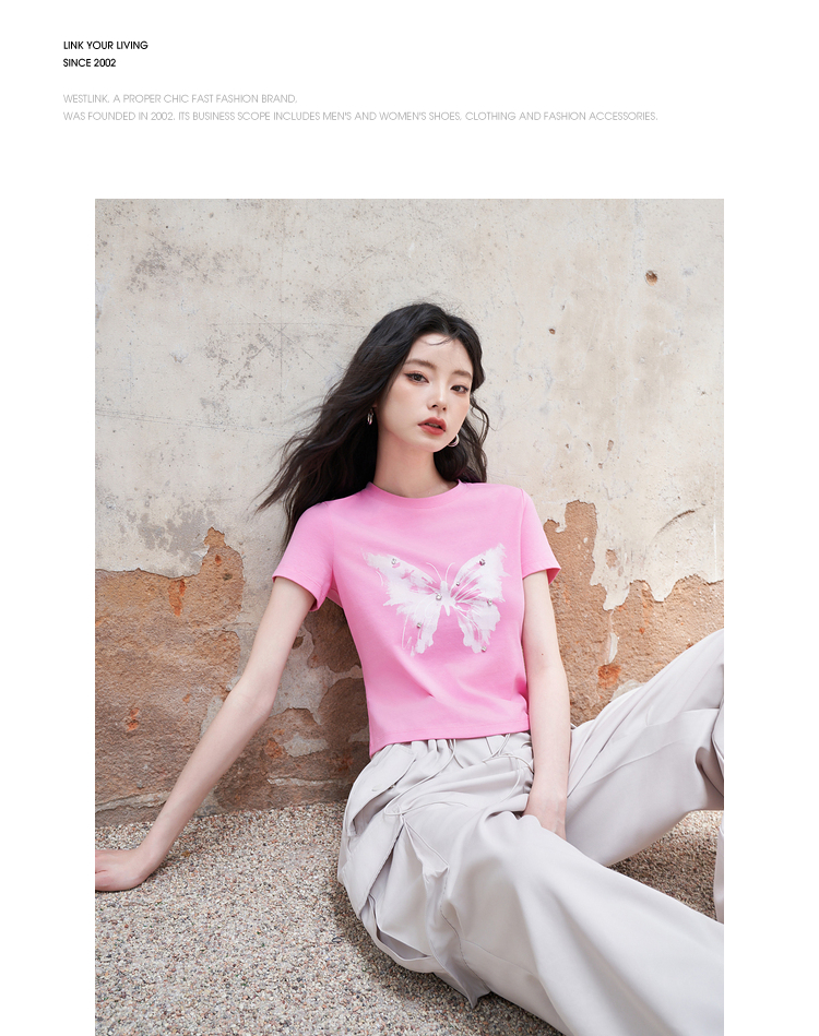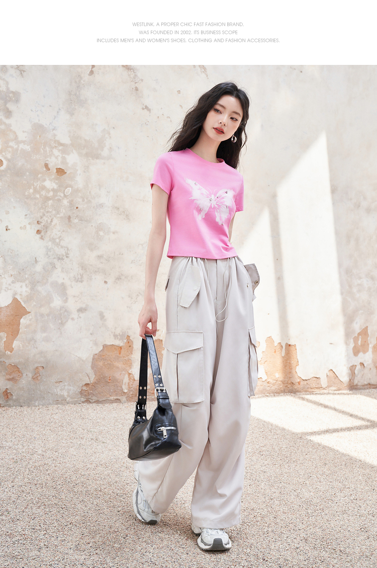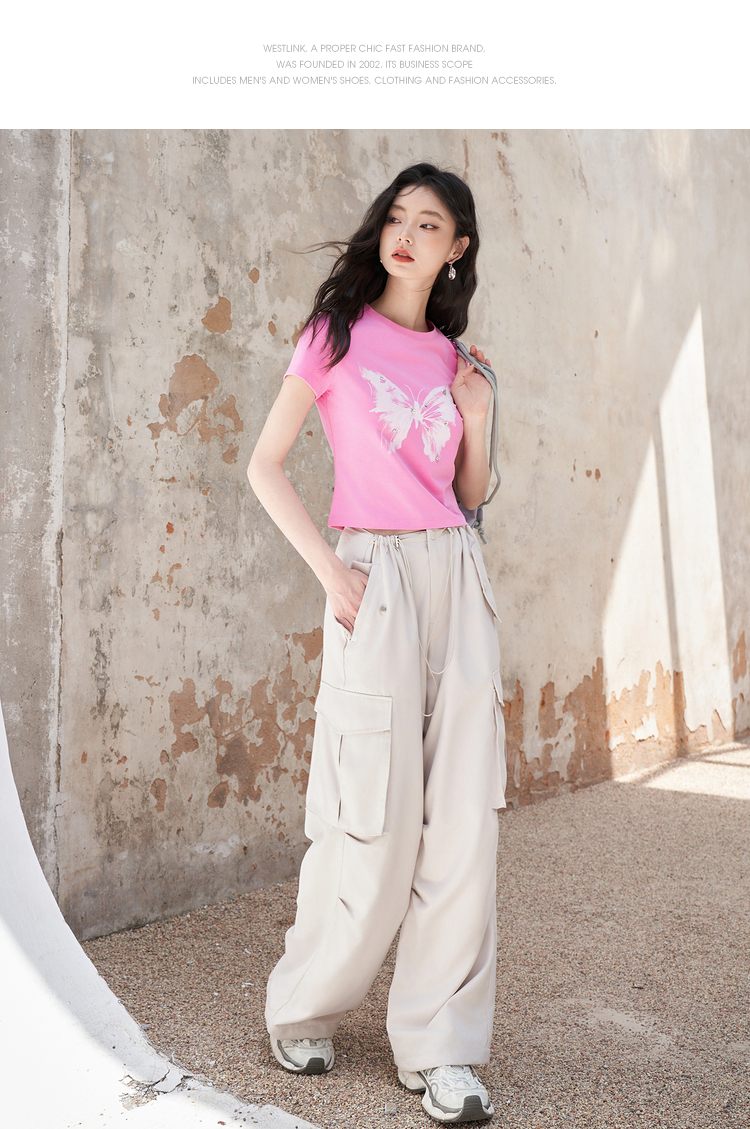 美式复古辣妹蝴蝶印花短袖T恤女春夏季短款修身上衣V0740452
