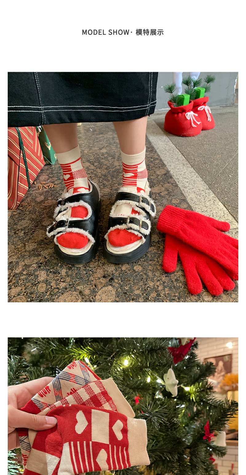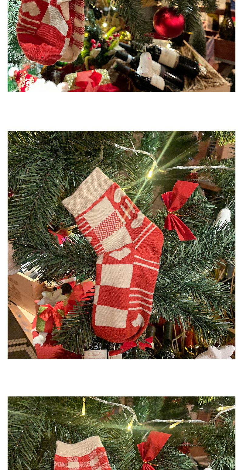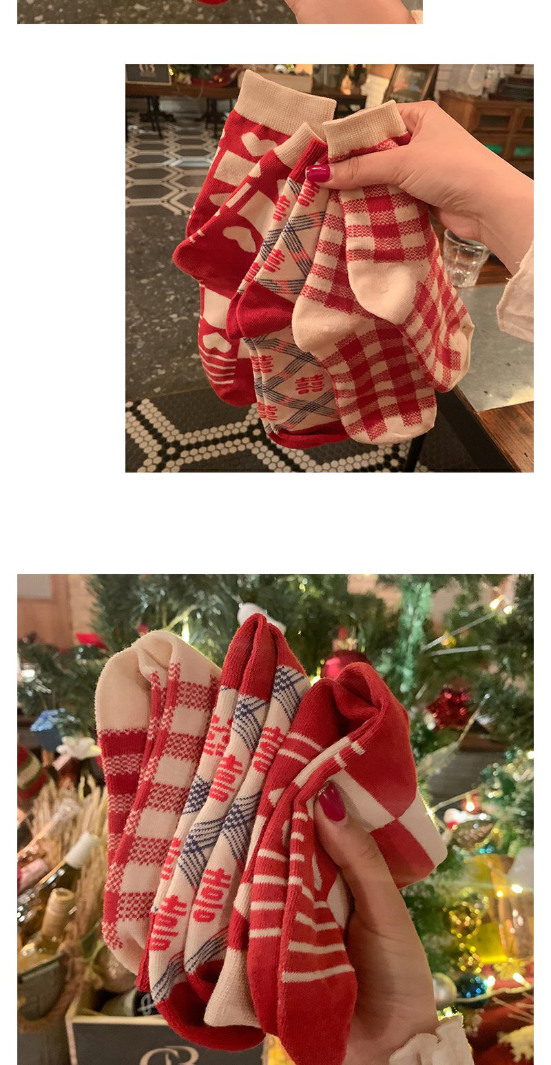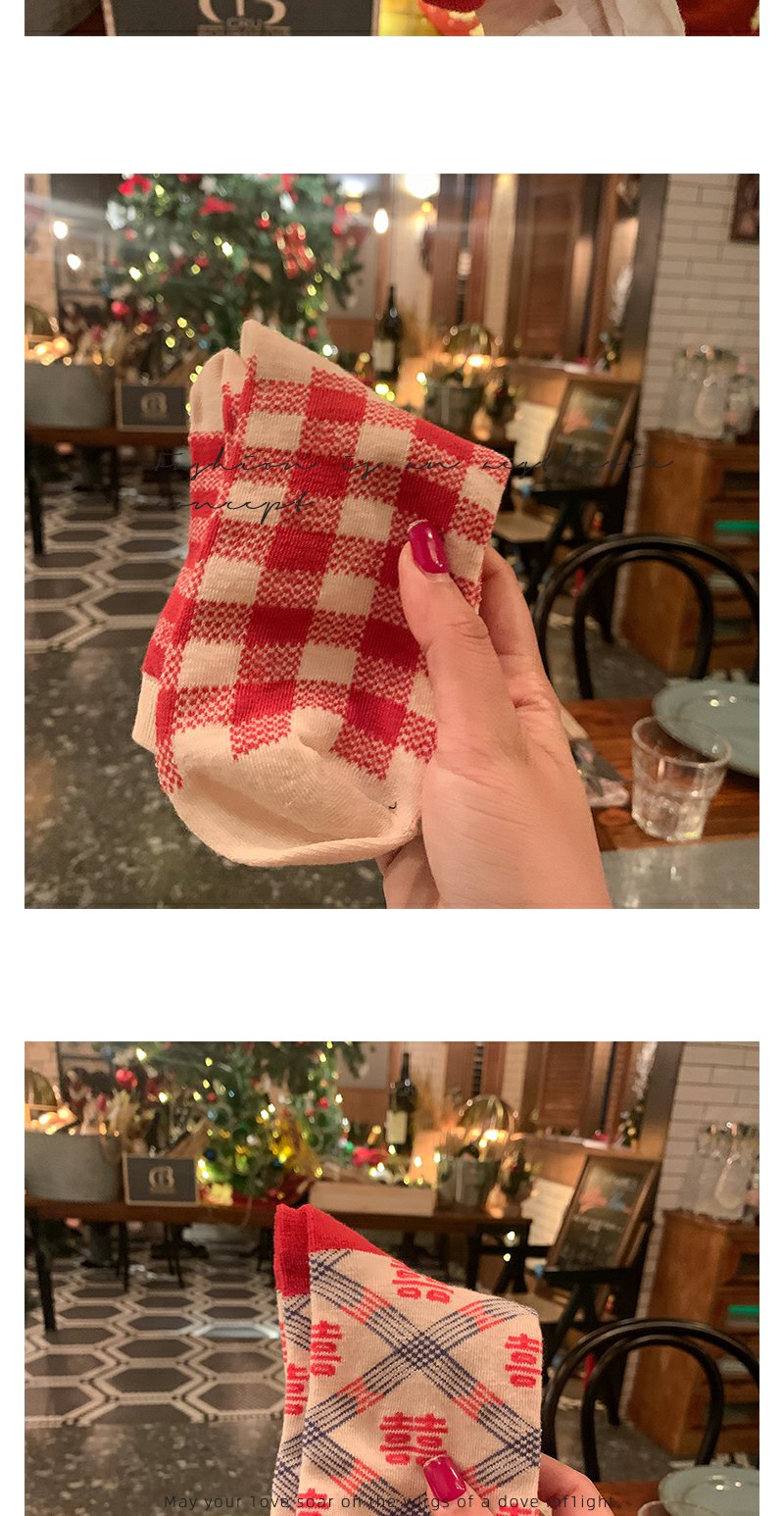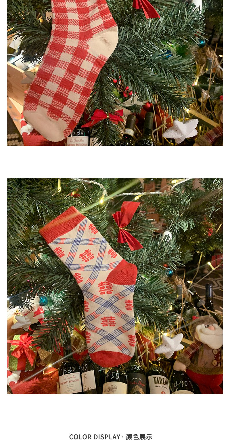 本命年红袜子女中筒袜ins潮外穿棋盘格情侣长筒袜