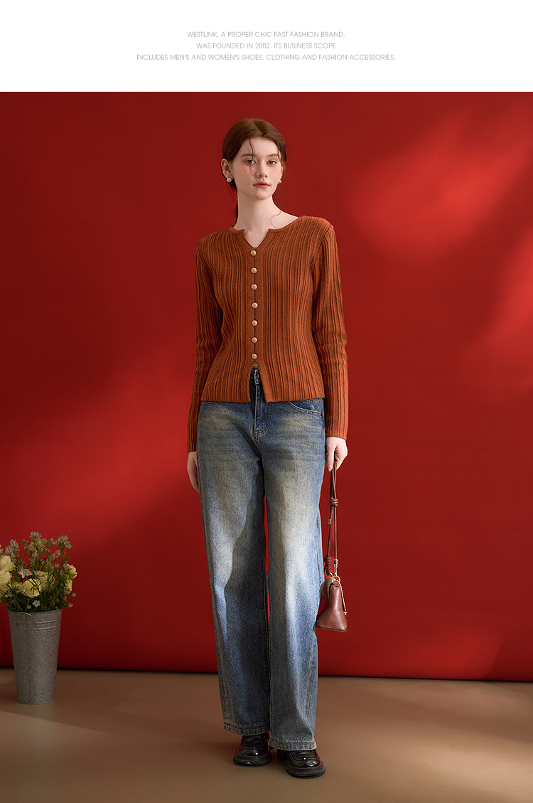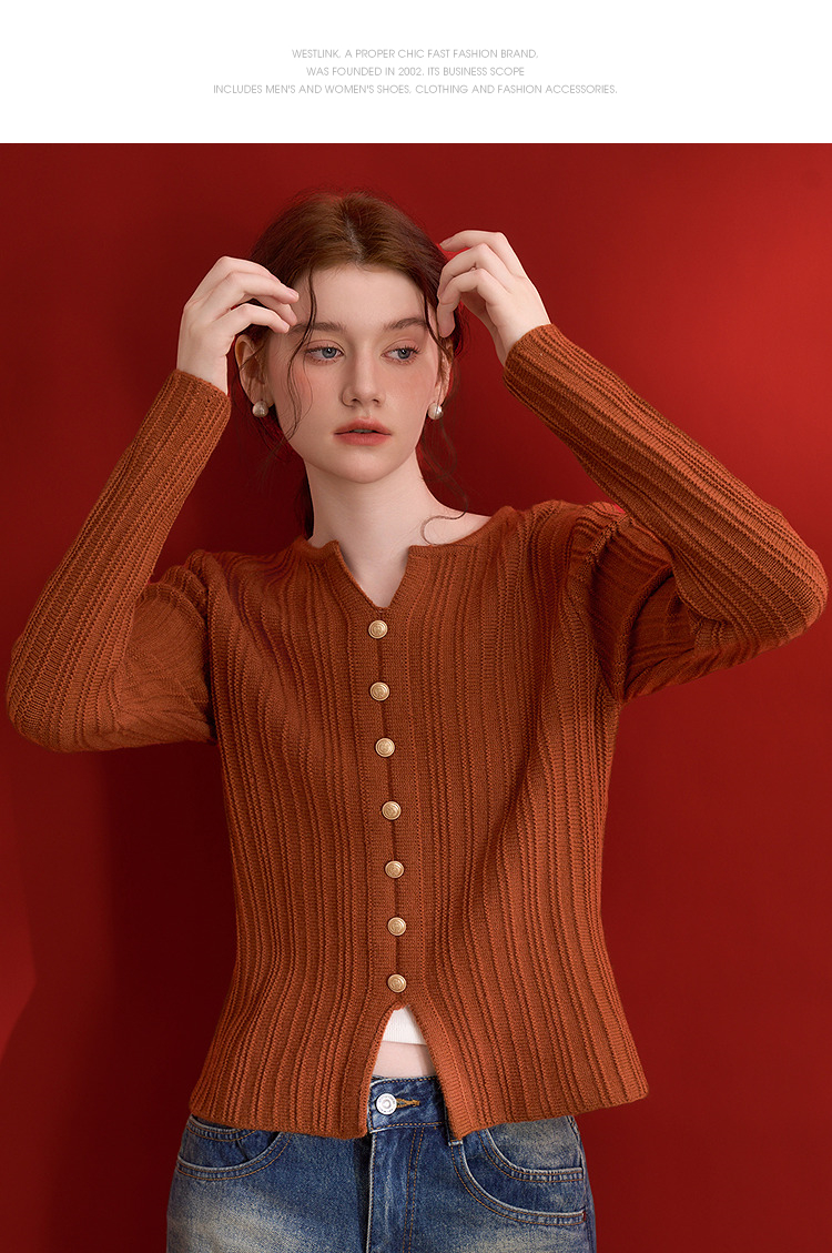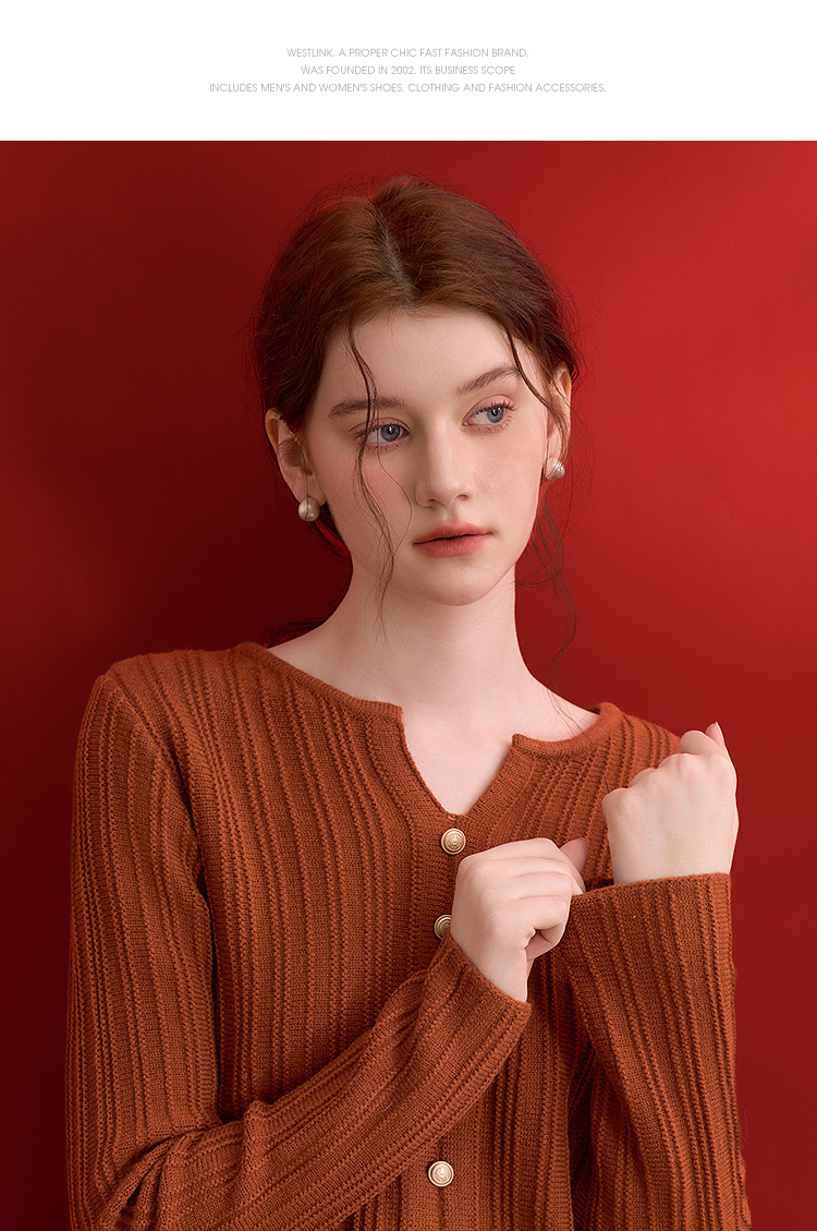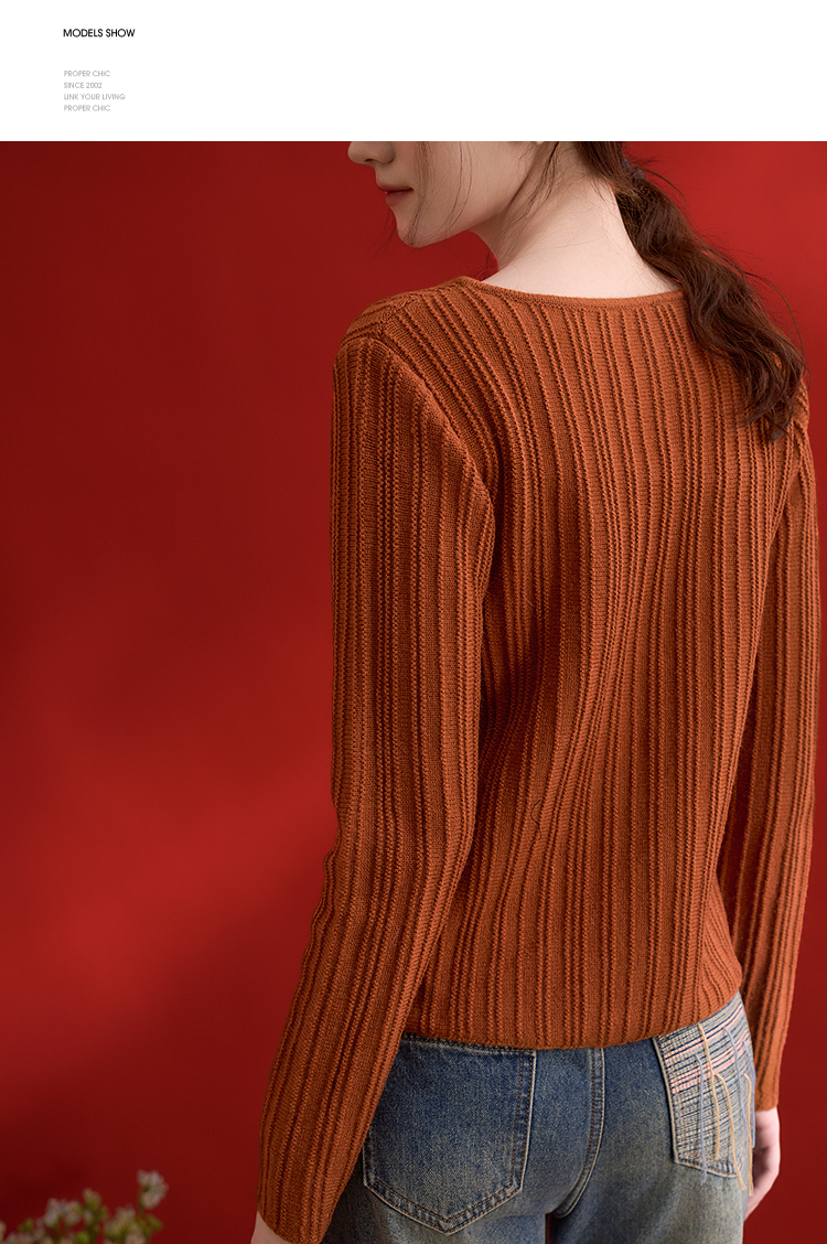 西遇HB复古辣妹纯欲风长袖针织上衣女新款咖色百搭毛衣SS140948