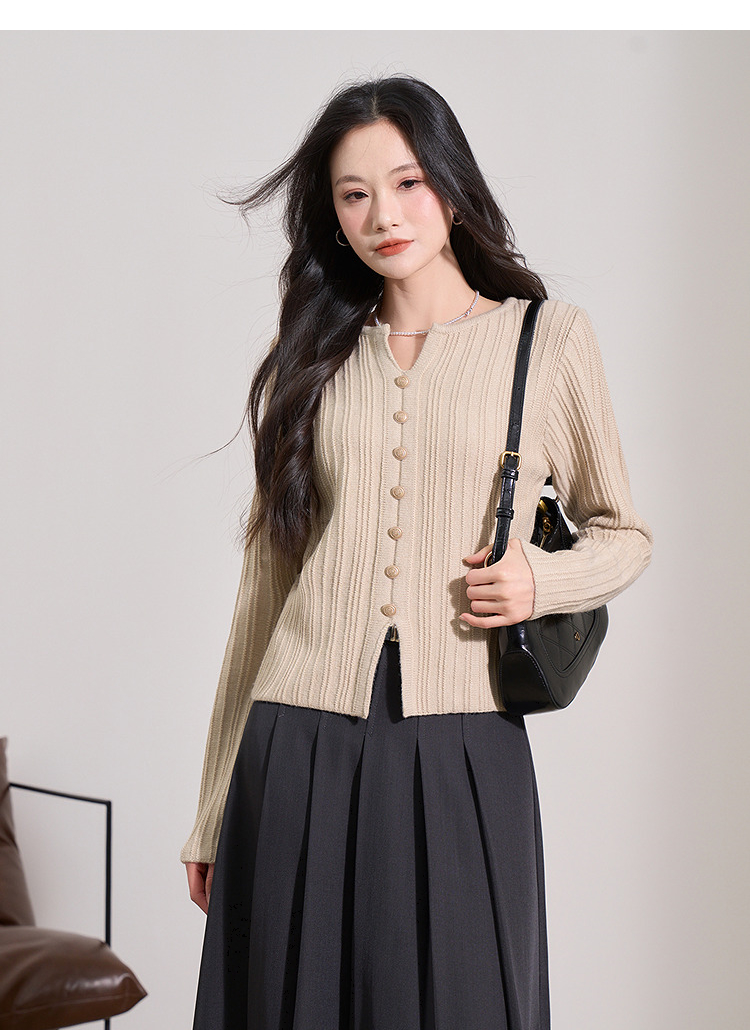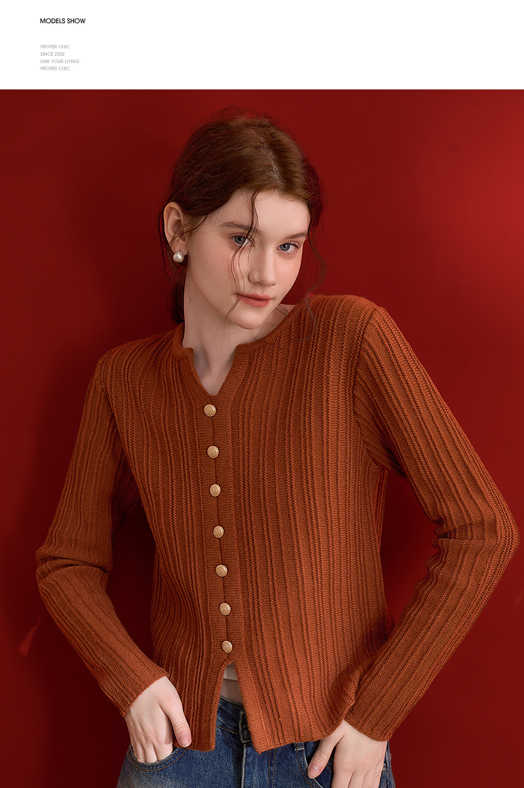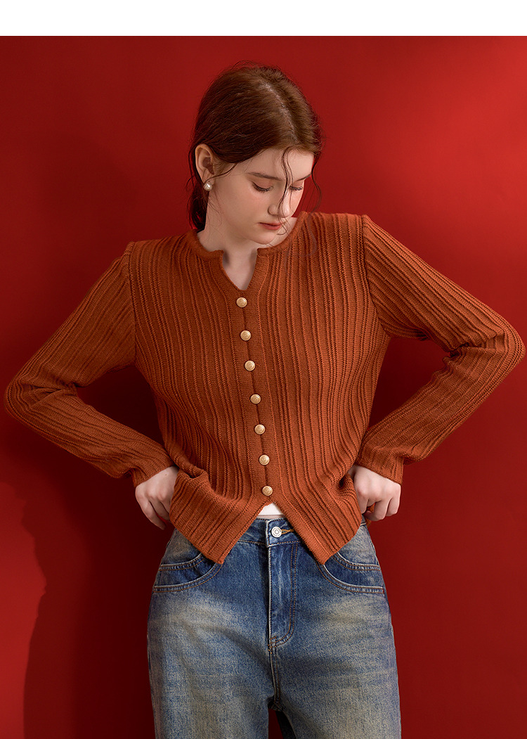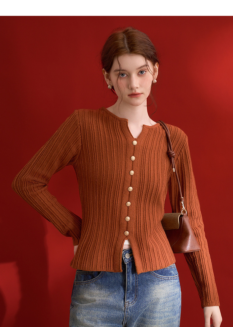 西遇HB复古辣妹纯欲风长袖针织上衣女新款咖色百搭毛衣SS140948