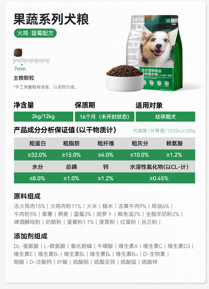 帕特全价幼孕期犬粮(火鸡肉·蓝莓)