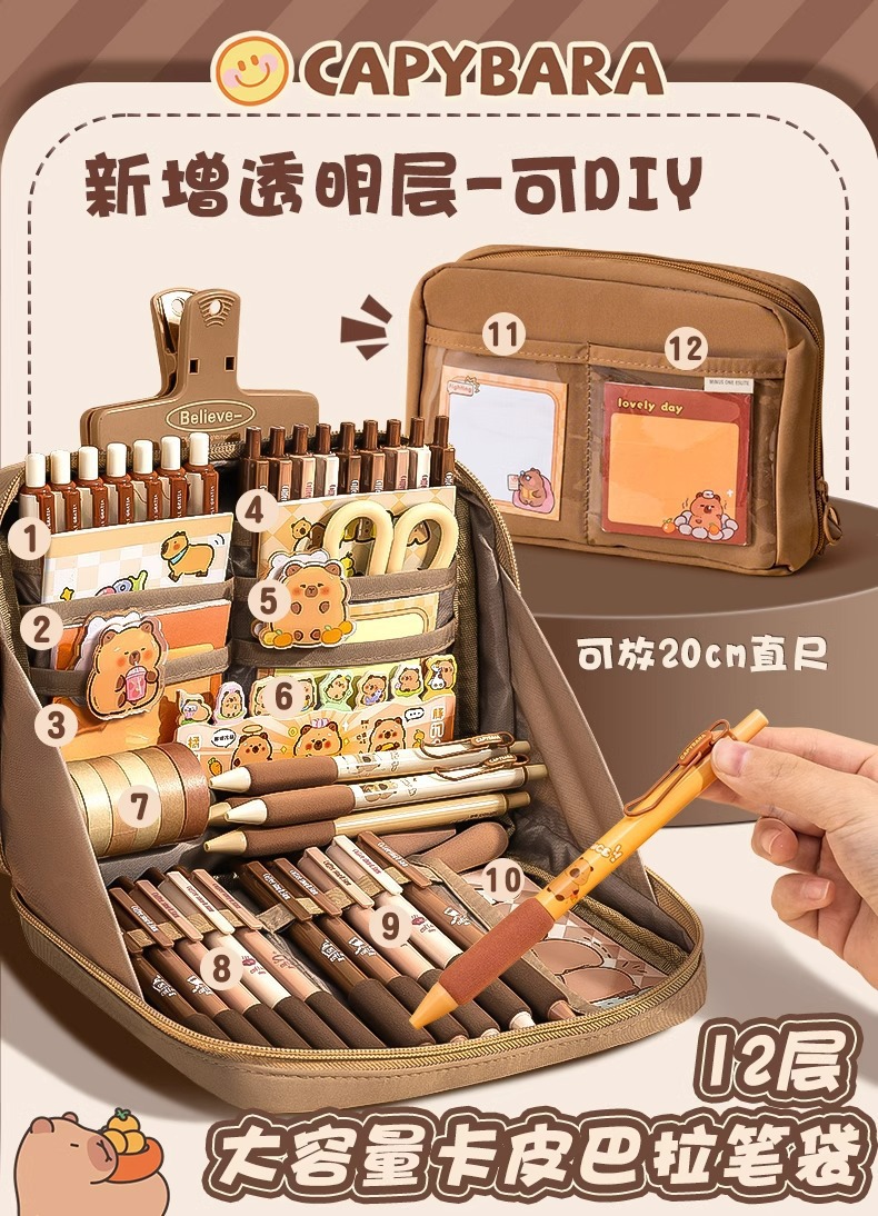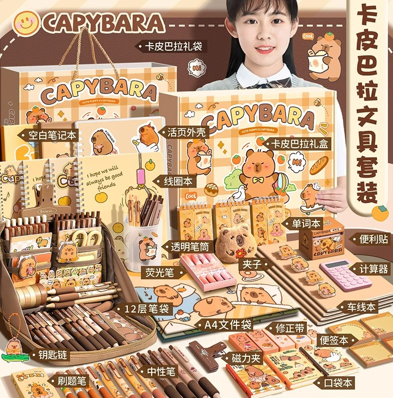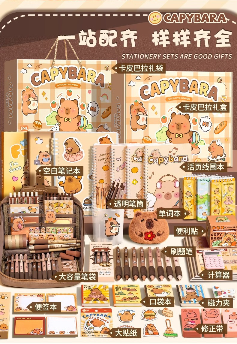 开学好礼!卡皮巴拉礼盒!【一站配齐!样样齐全!】卡皮巴拉学习用品 女生儿童生日礼物 伴手礼盒笔袋 高颜值文具套装-QB