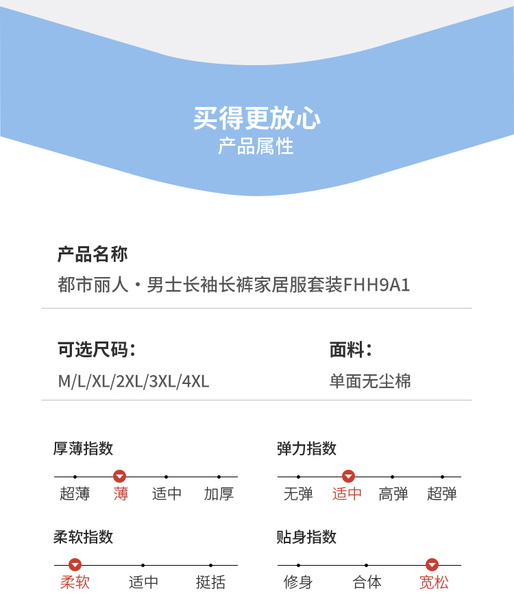 都市丽人男士无尘棉长袖套装薄单面无尘棉亲情蜜语无长袖类FHH9A1