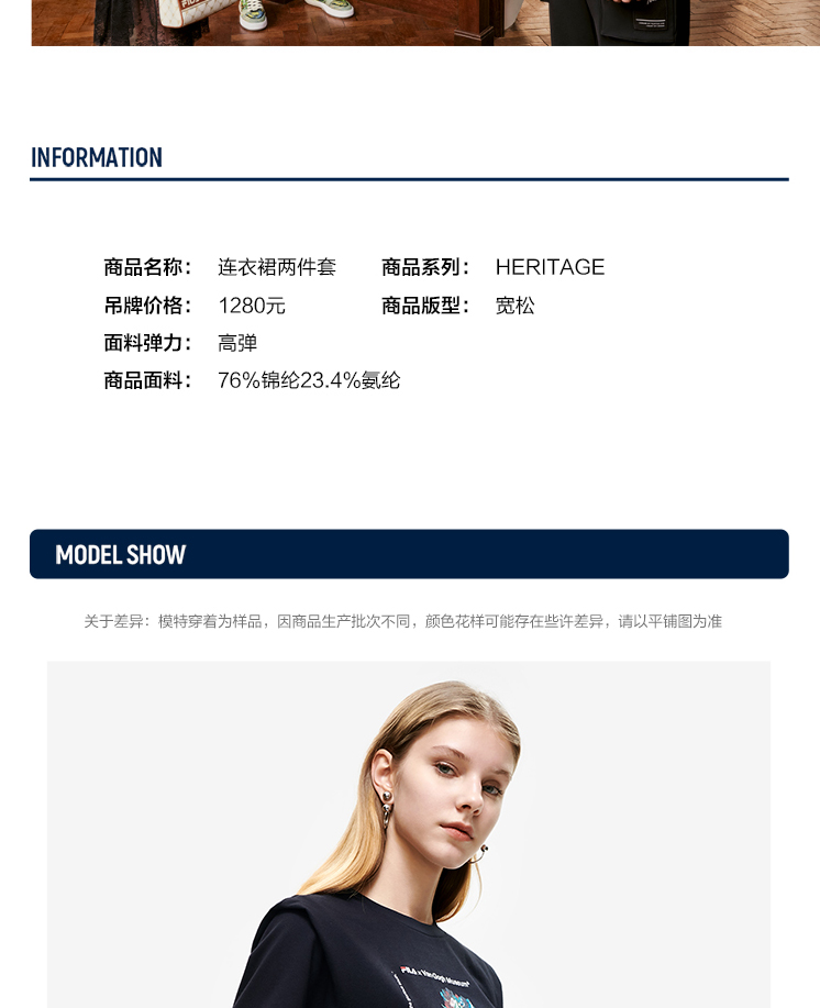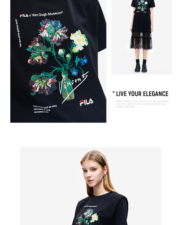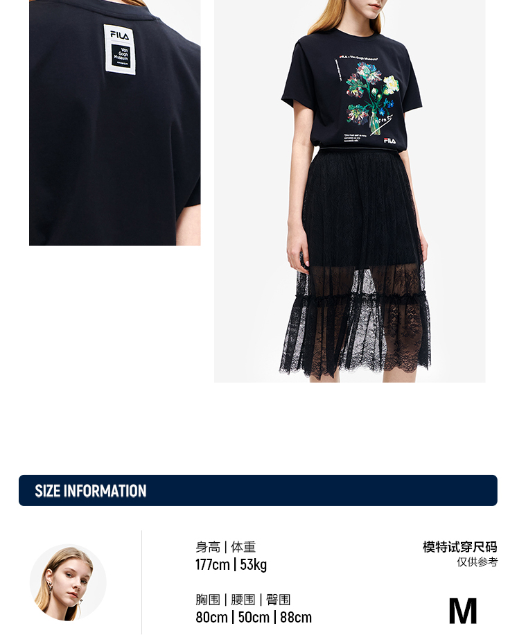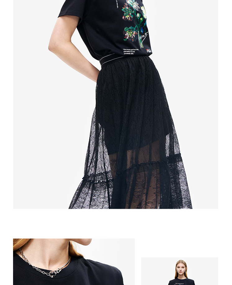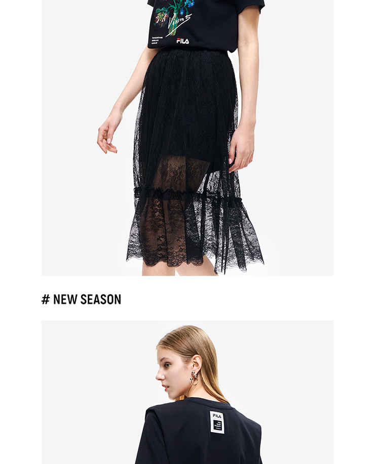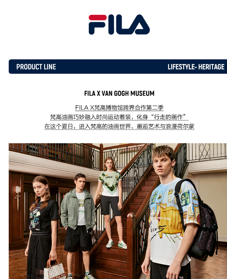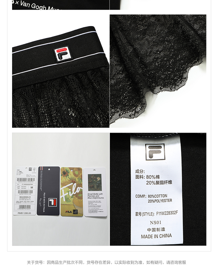 FILA x 梵高博物馆【高圆圆同款】斐乐优雅两件套蕾丝连衣裙F11W228302F