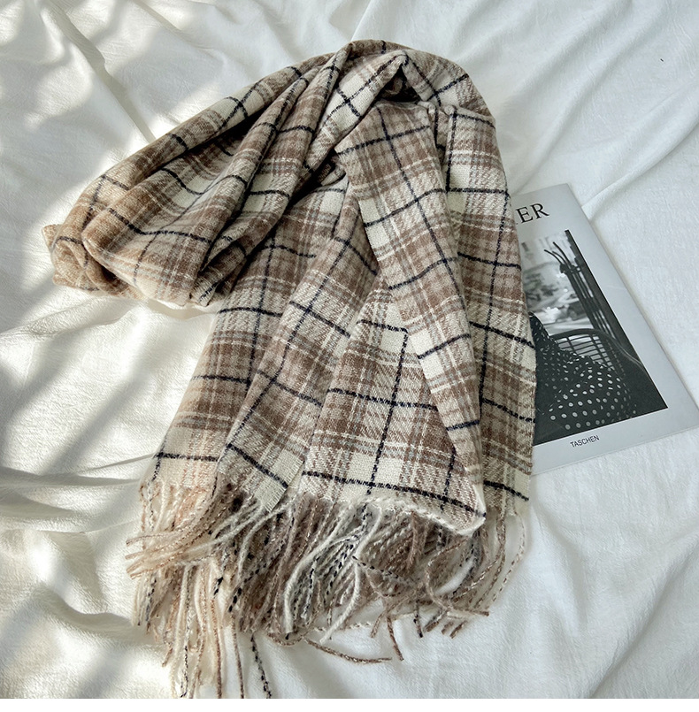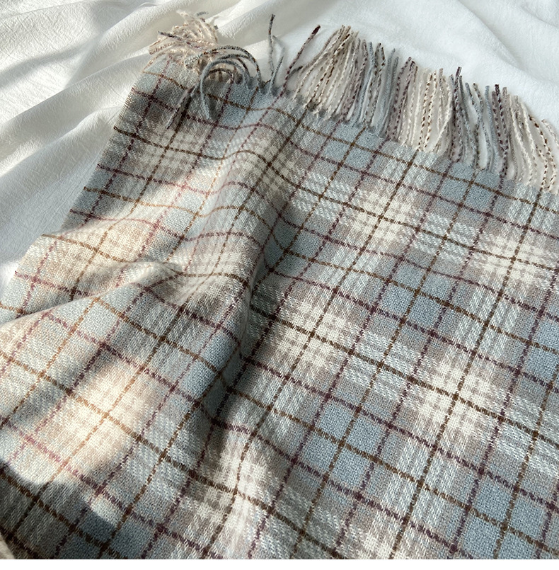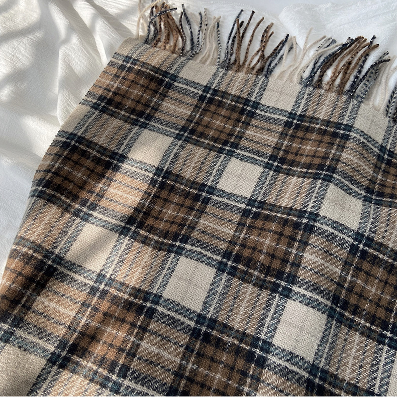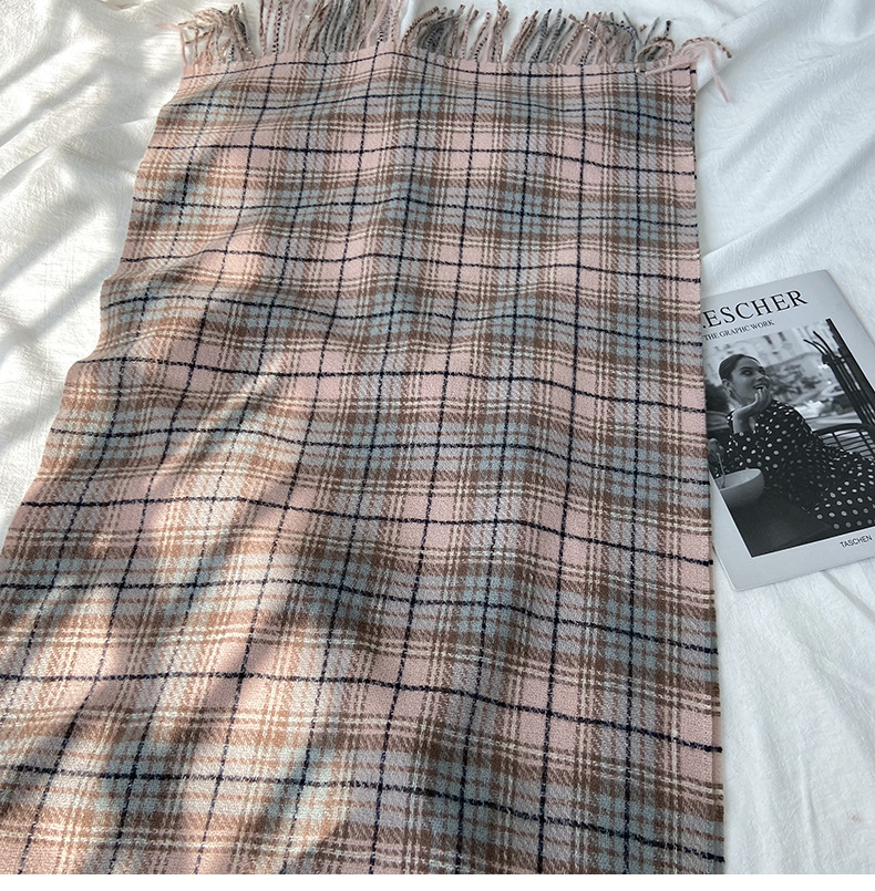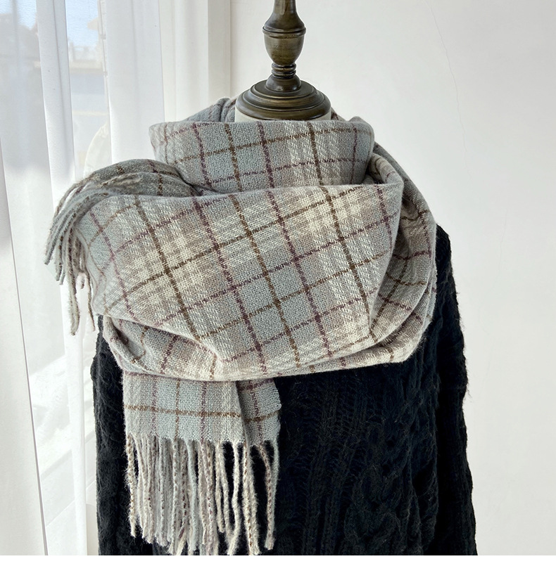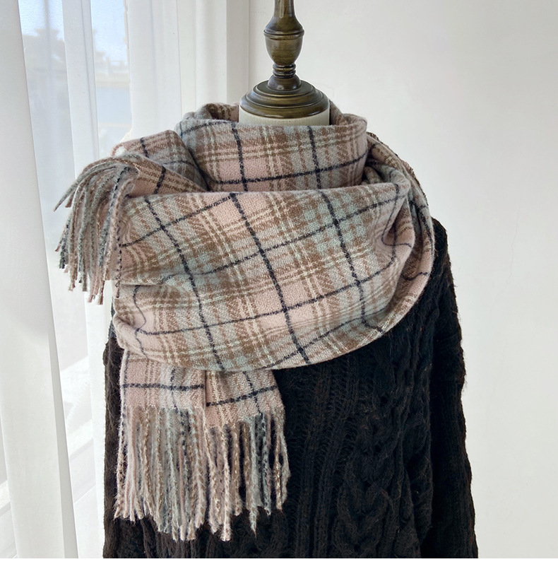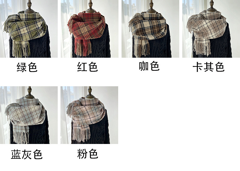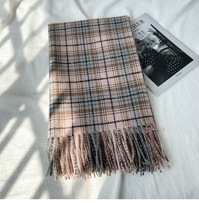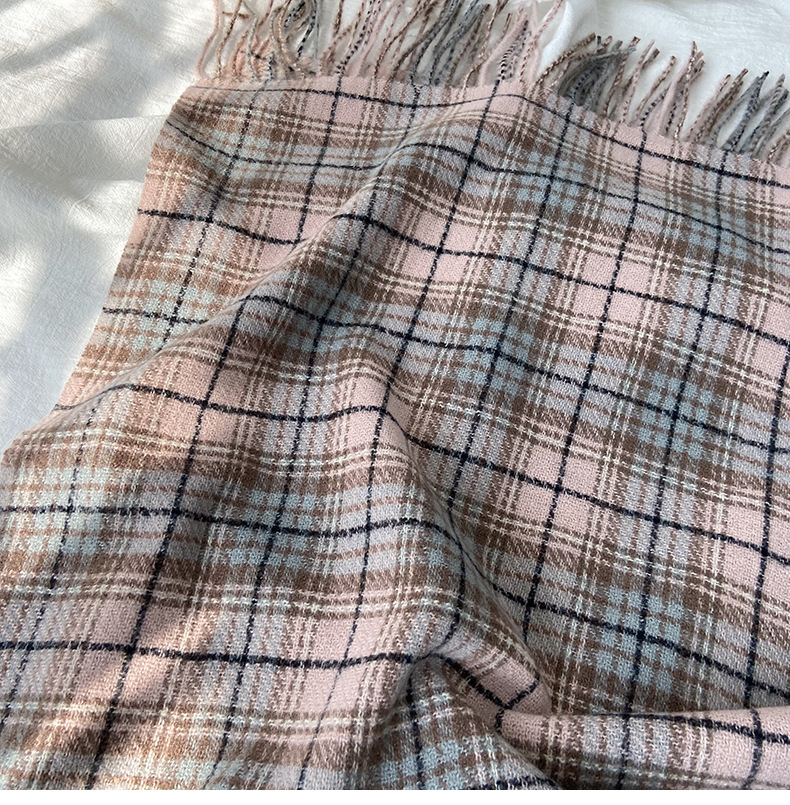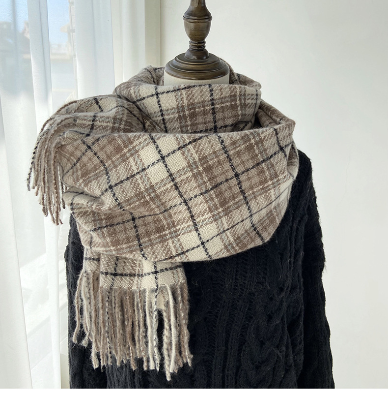 格子围巾女秋冬学生新款围脖韩系流苏高级氛围感保暖情侣百搭披肩