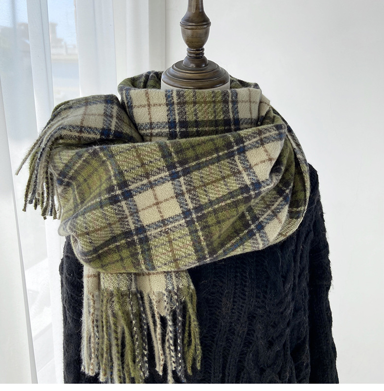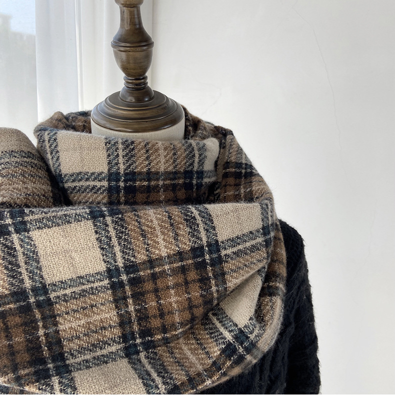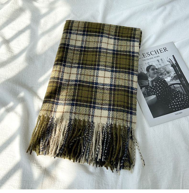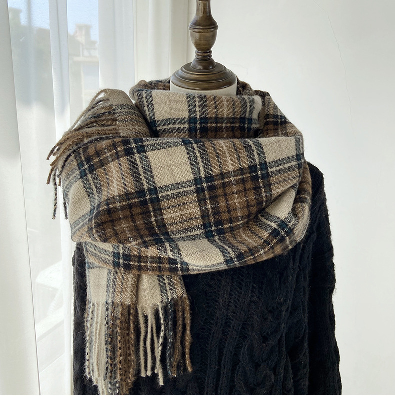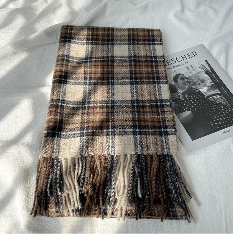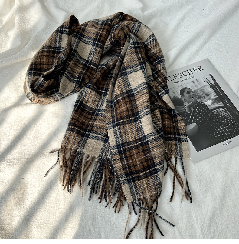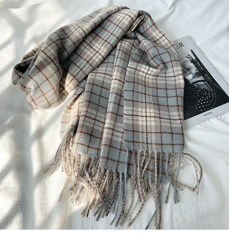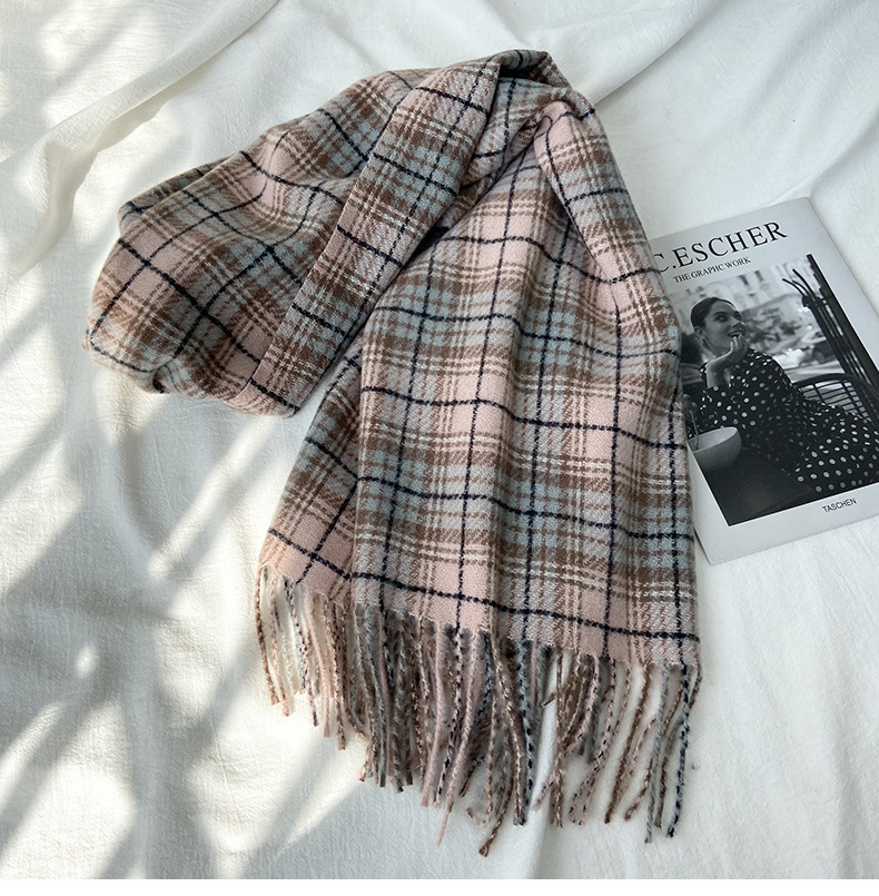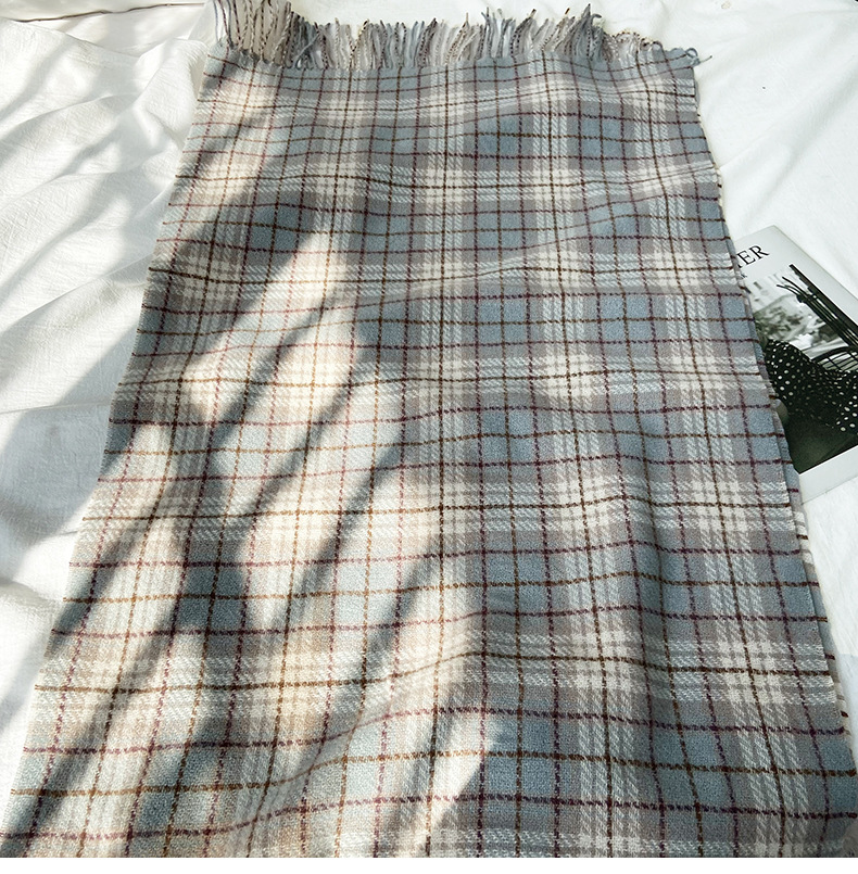 格子围巾女秋冬学生新款围脖韩系流苏高级氛围感保暖情侣百搭披肩