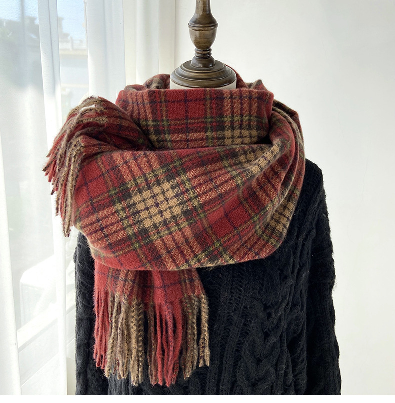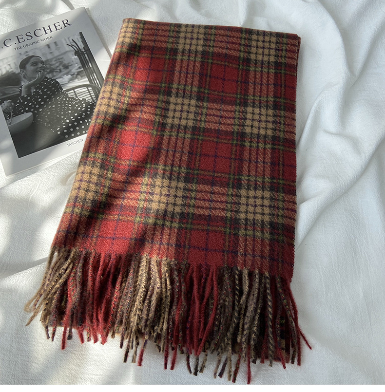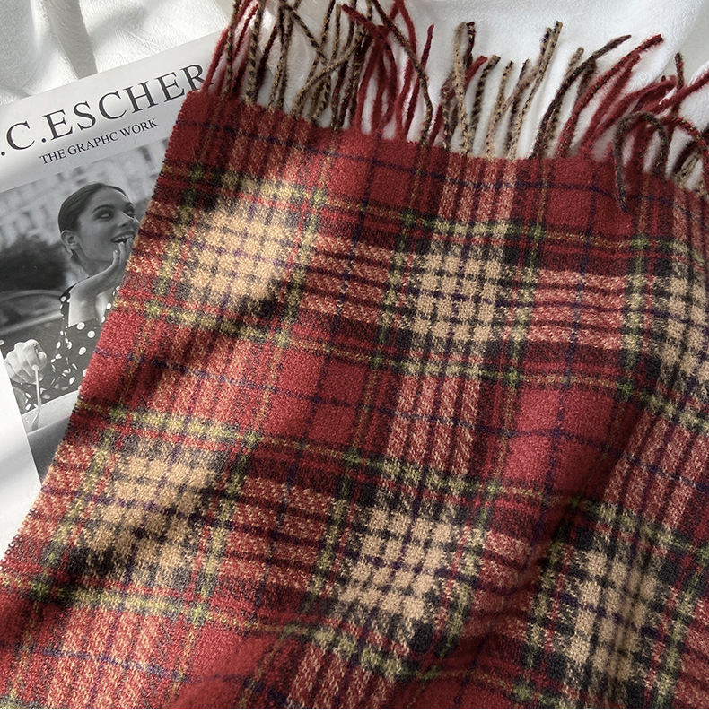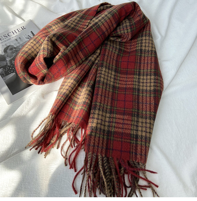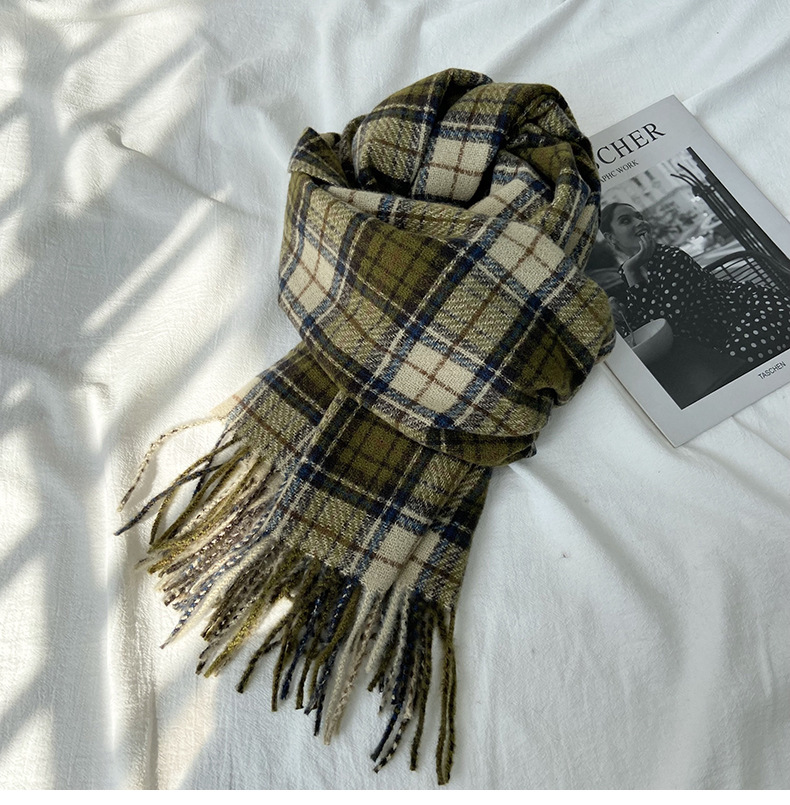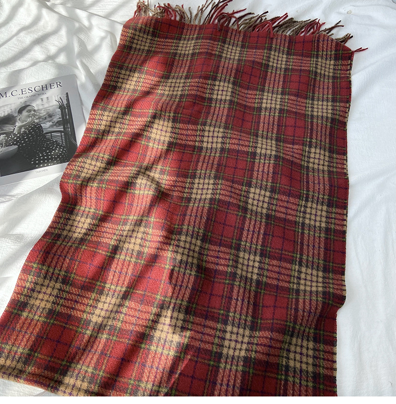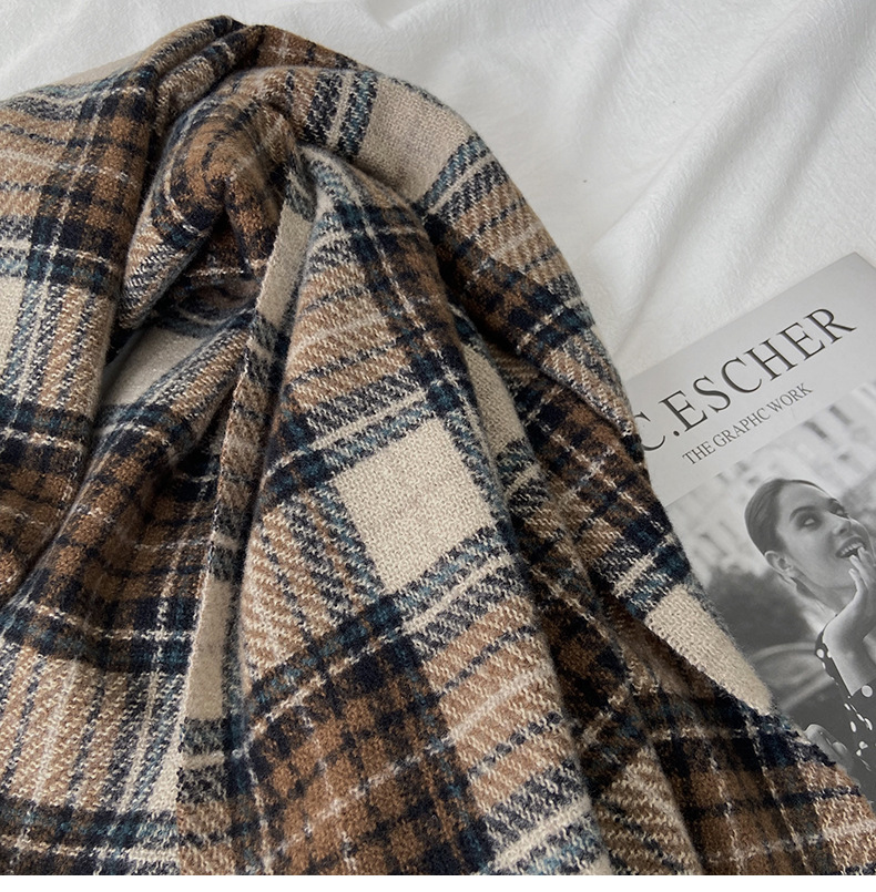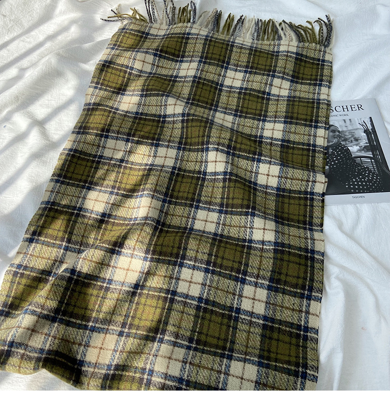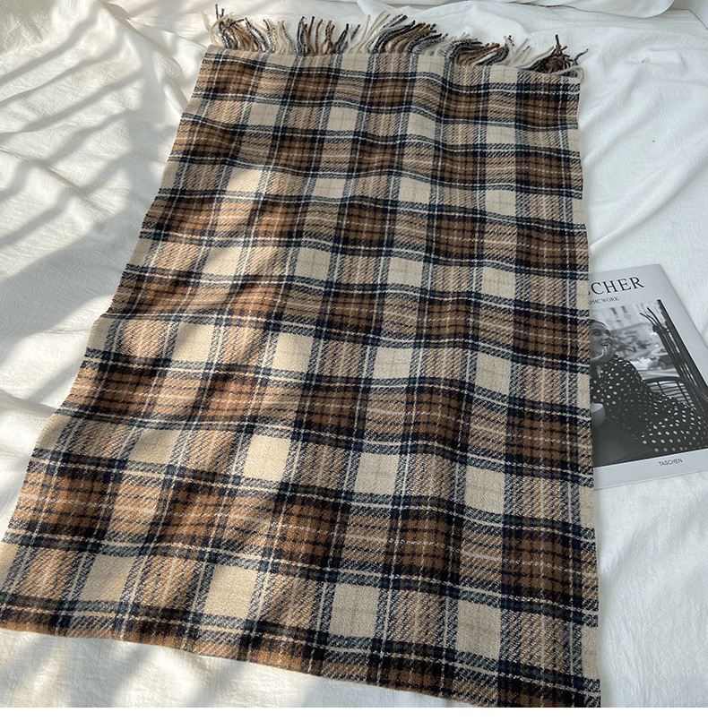 格子围巾女秋冬学生新款围脖韩系流苏高级氛围感保暖情侣百搭披肩