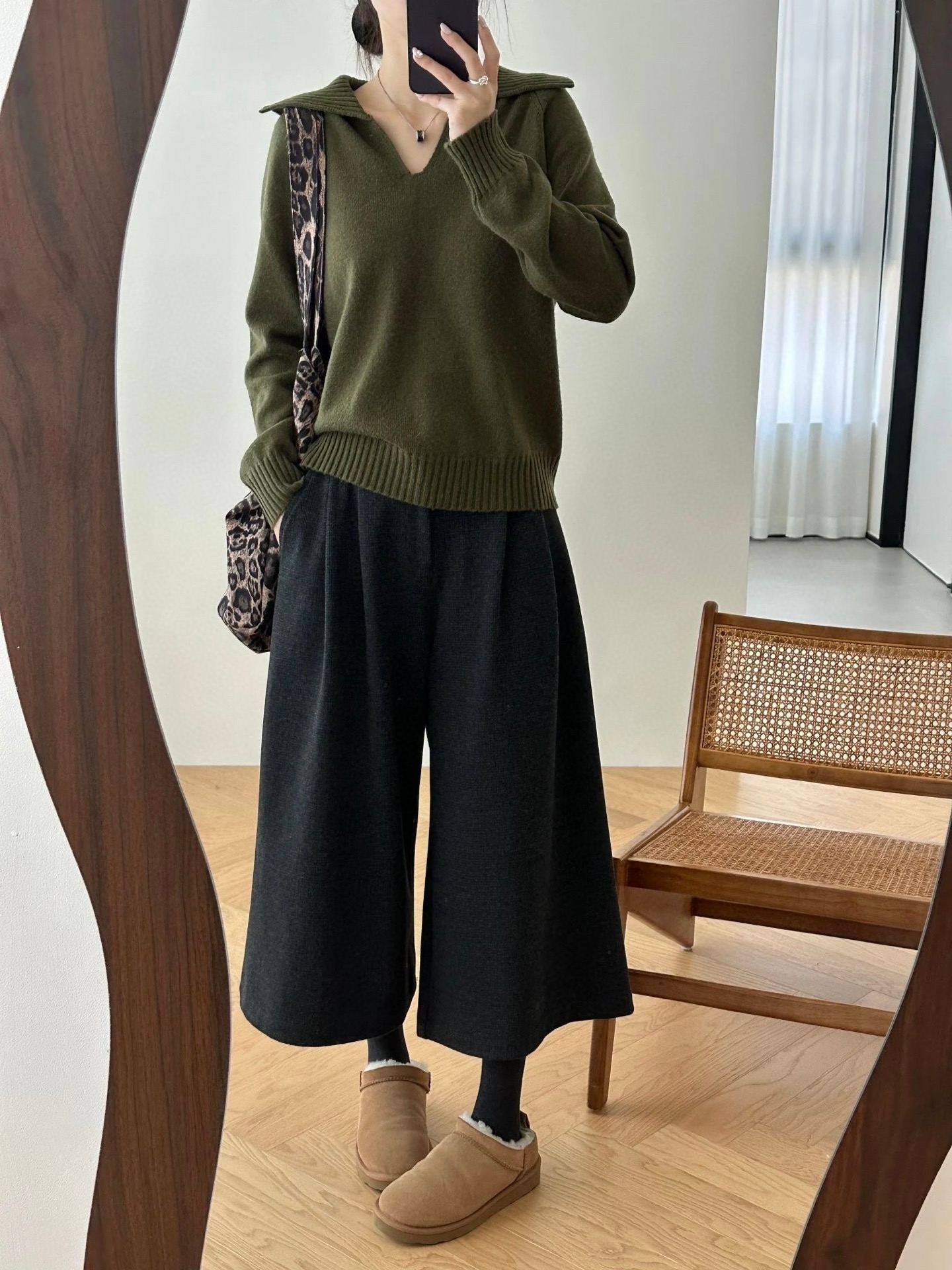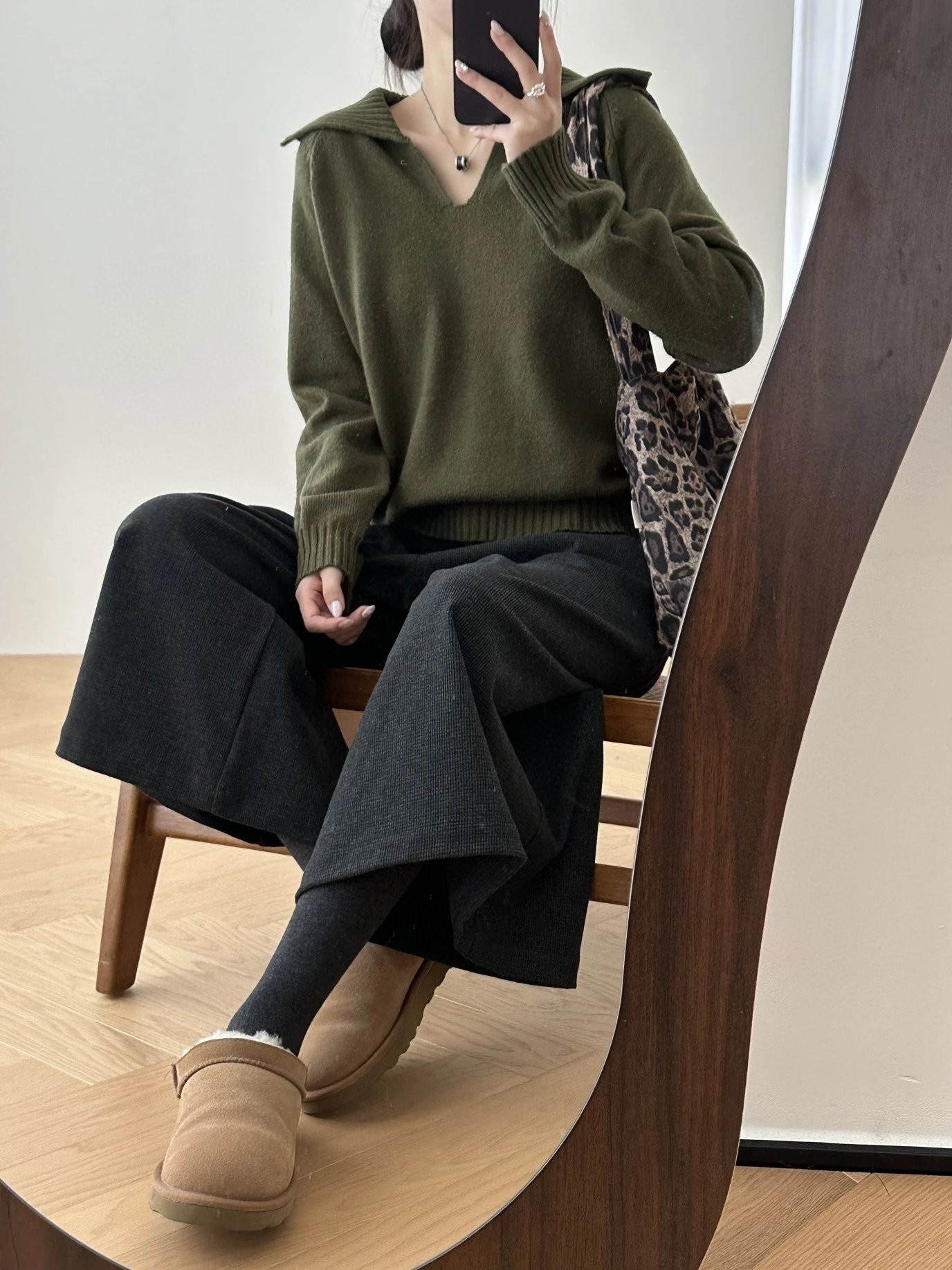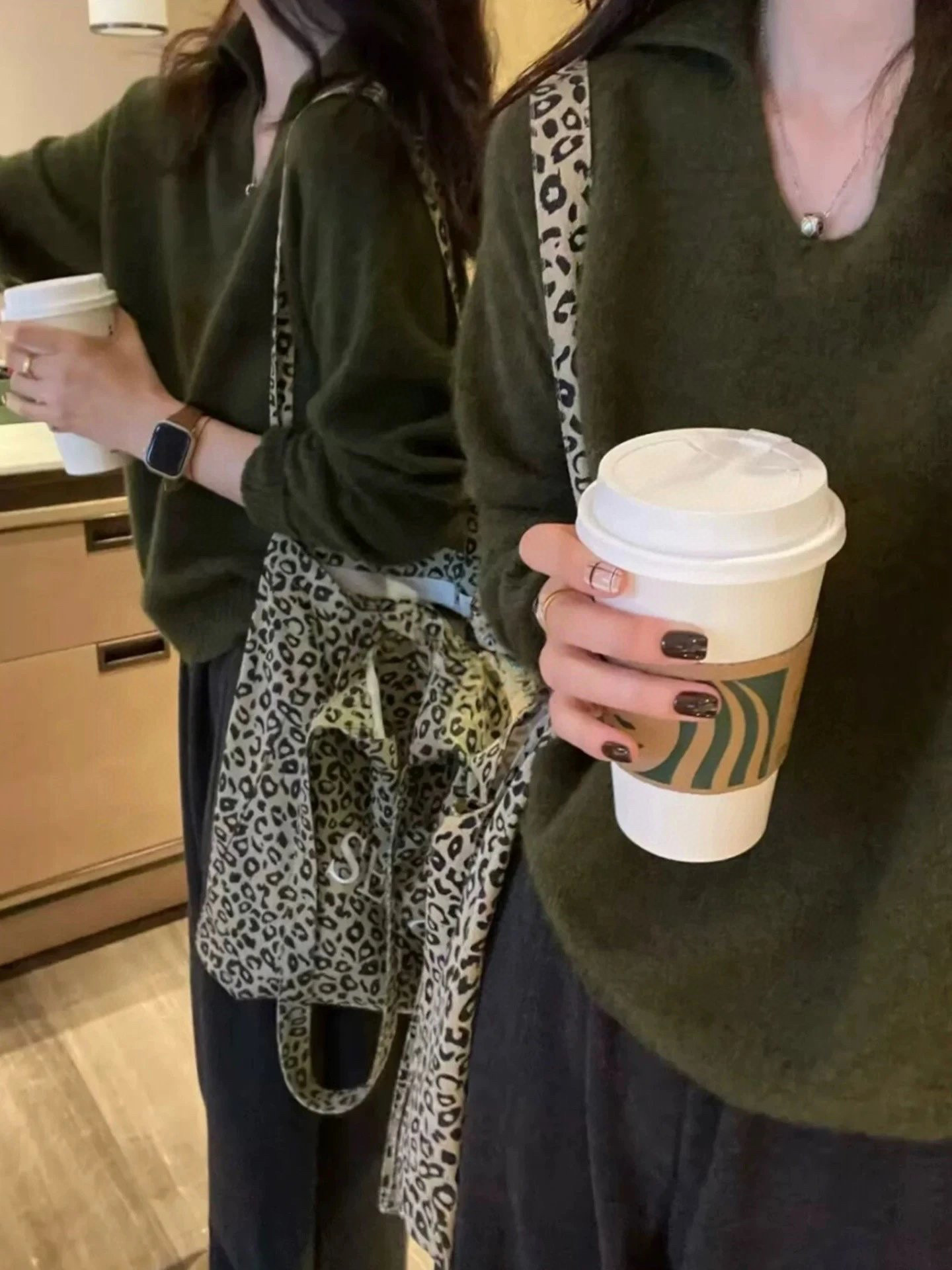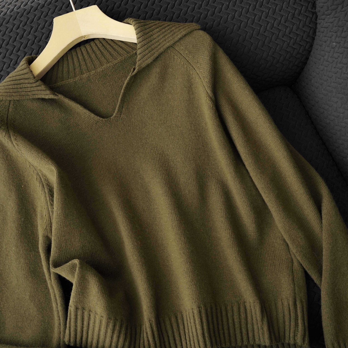 💰109元包邮 【JS3699142】 显白苔藓绿 V翻领针织毛衣 浓郁复古衬肤色 这抹苔藓绿, 是自带冷白皮滤镜的色调, 黄皮上身也能衬出通透好气色