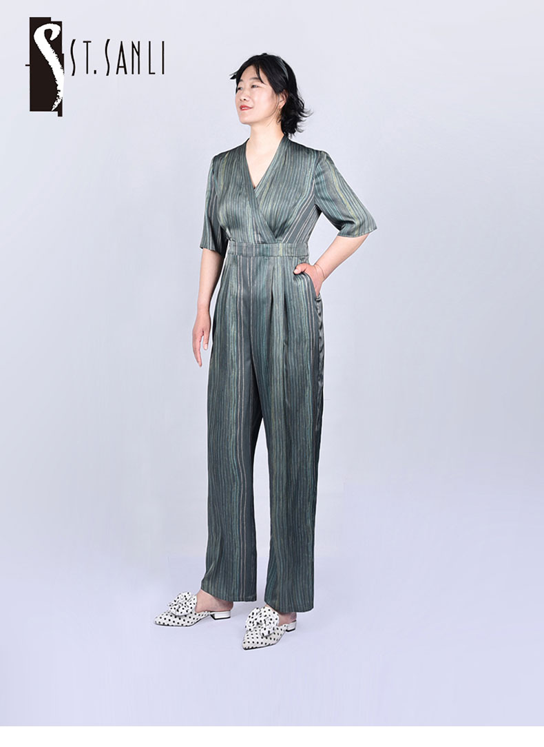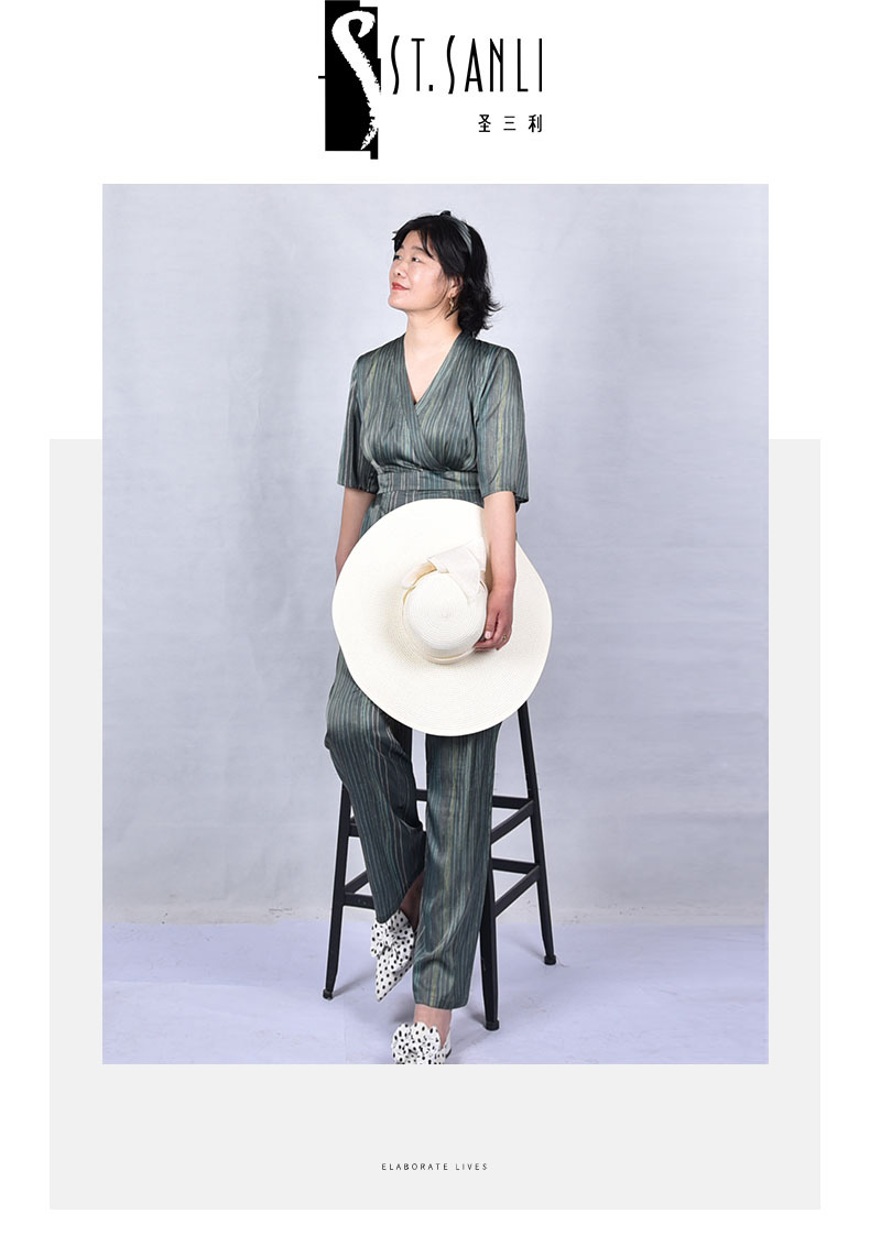 圣三利女装新春夏季气质条纹连体裤SL2016157