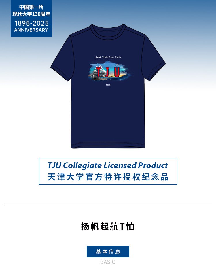 天大文创精品系列·TJU 扬帆起航男士休闲短袖T恤