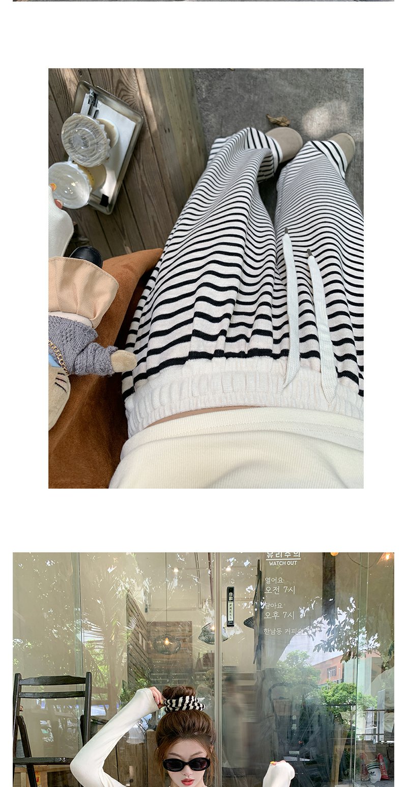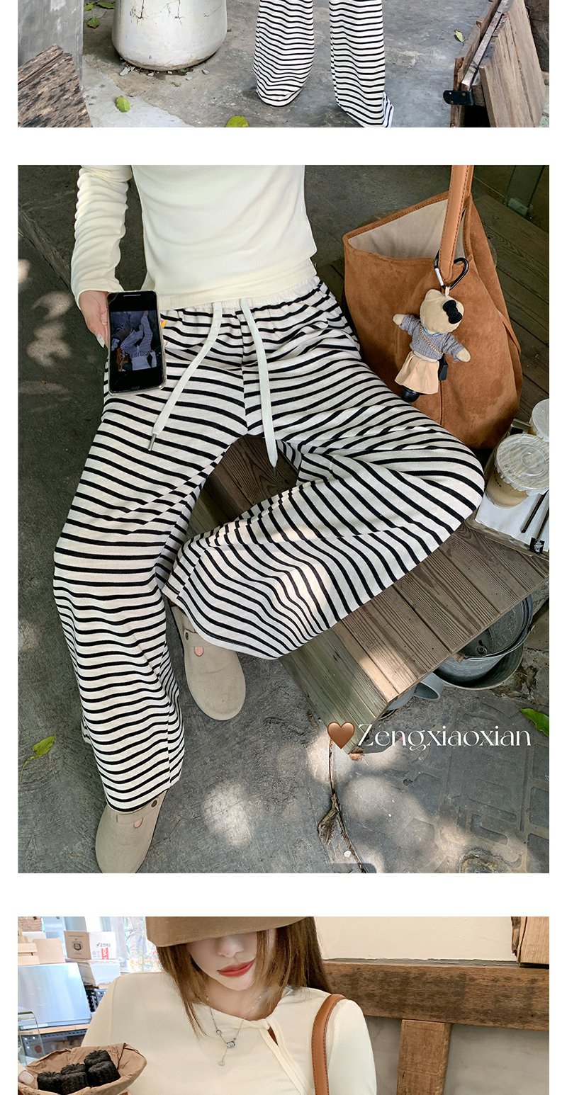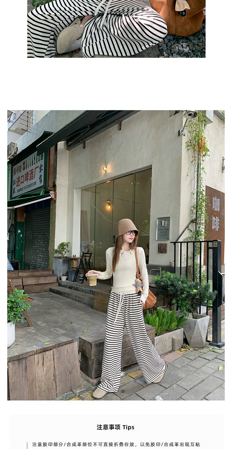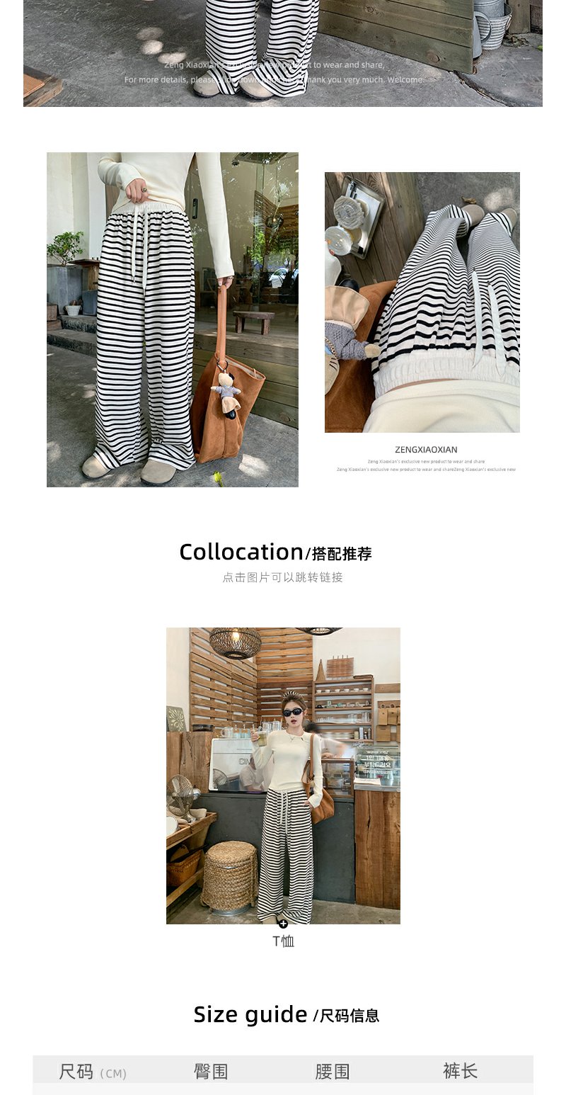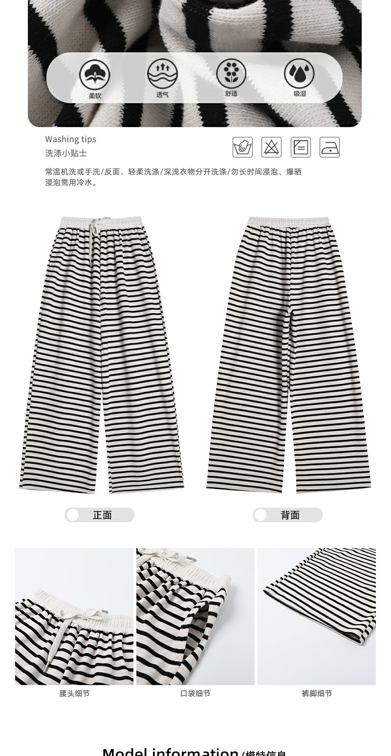 【129元任选2件】现货!韩版百搭抽绳条纹阔腿休闲裤