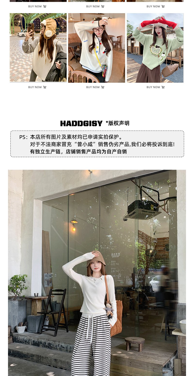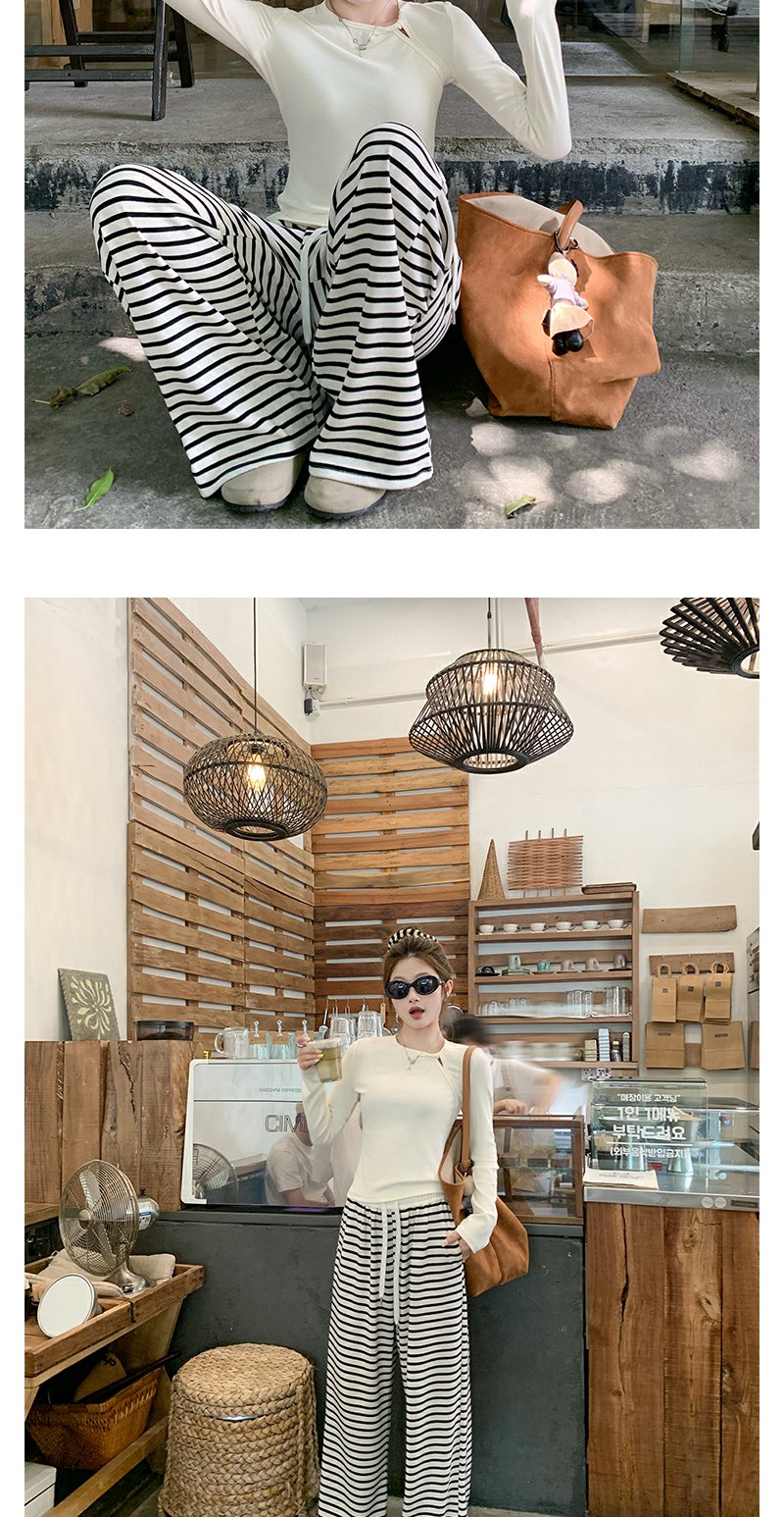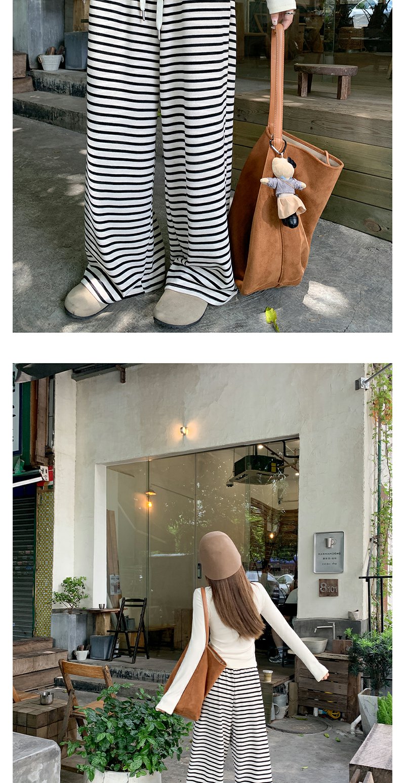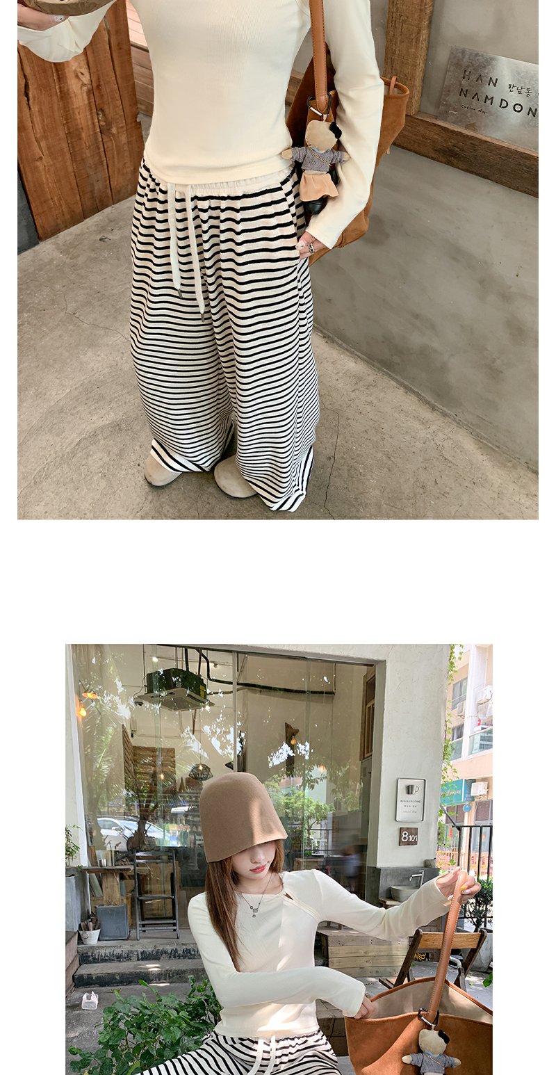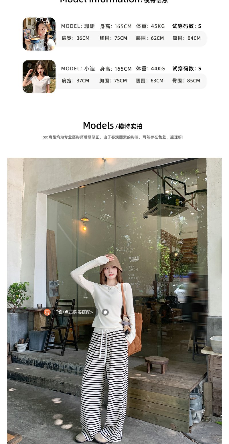 【129元任选2件】现货!韩版百搭抽绳条纹阔腿休闲裤