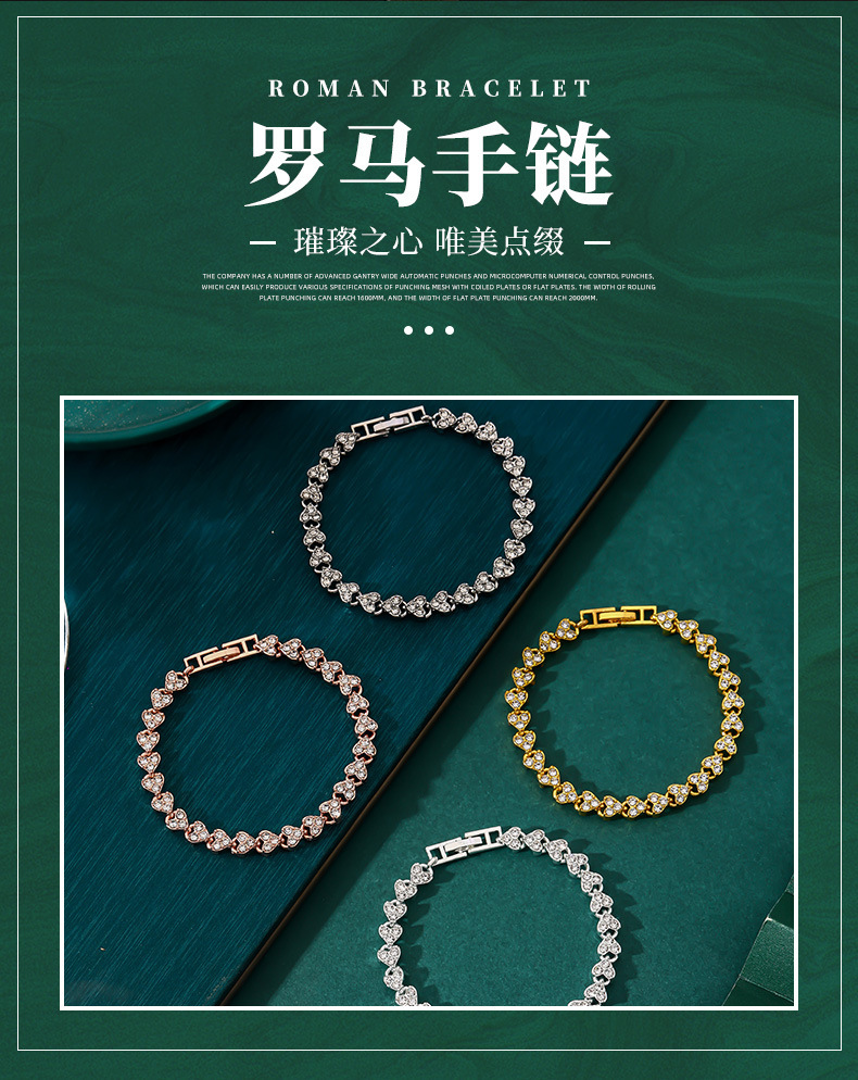 「买1送1!欧美风罗马手链」女生高级感精致手链 手饰简约创意爱心手镯时尚饰品