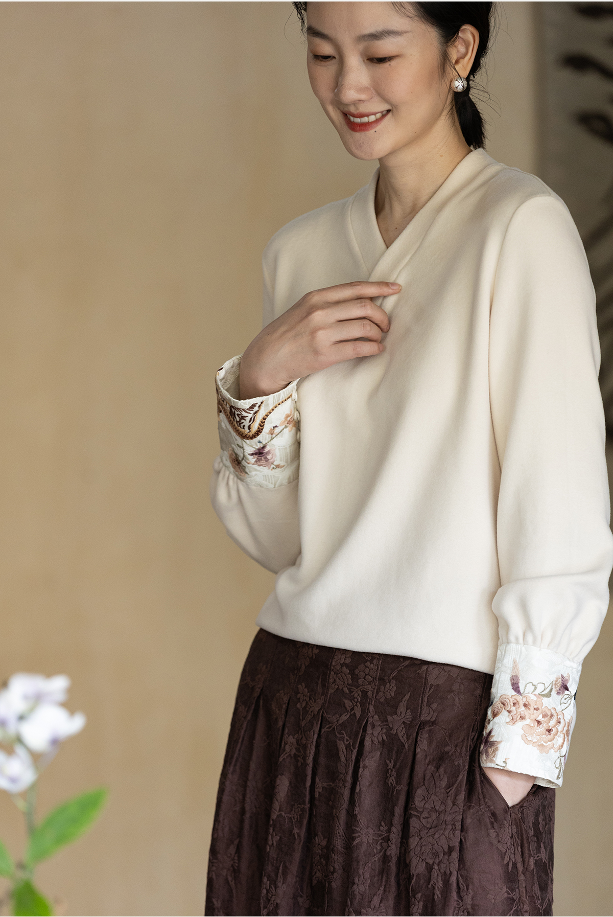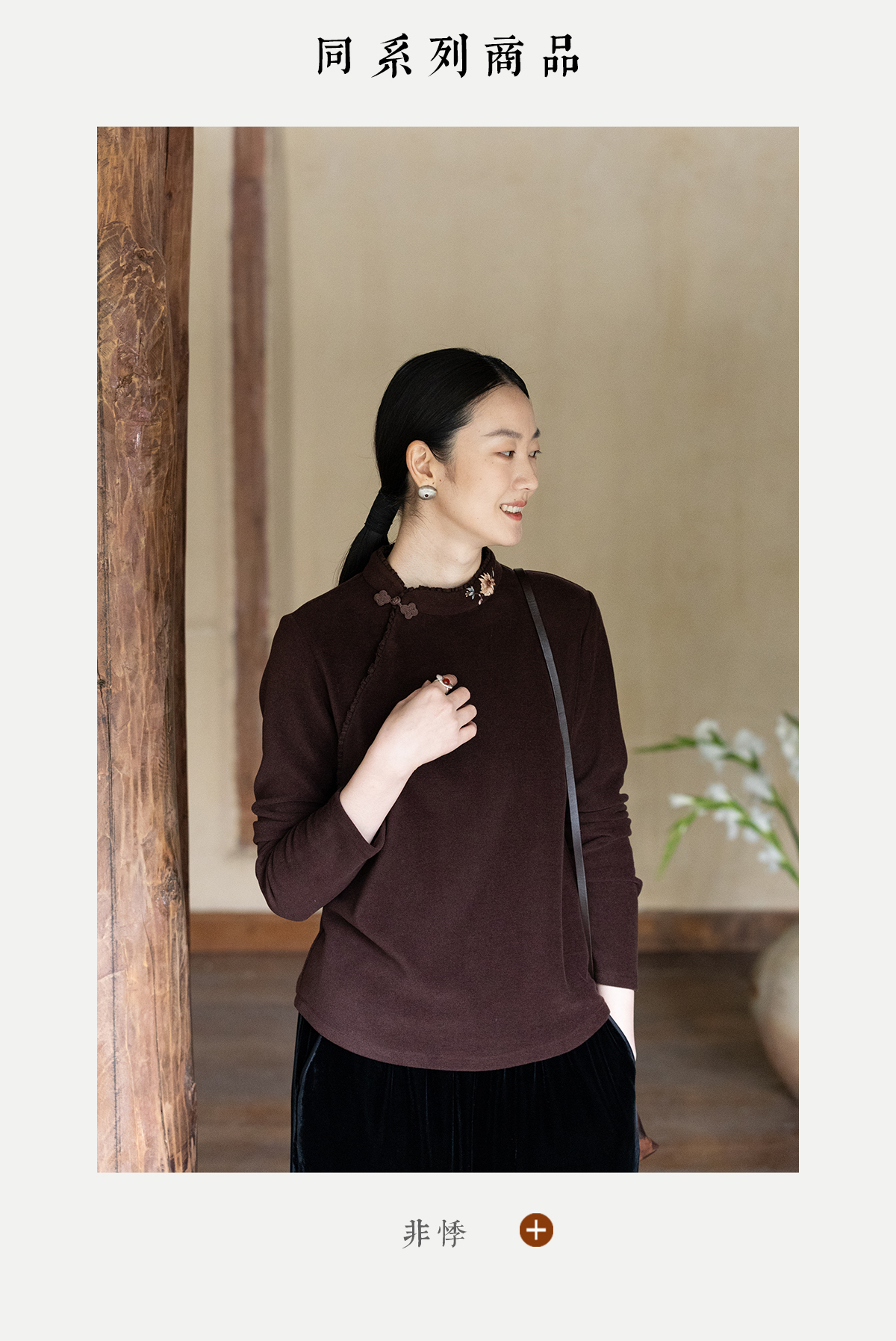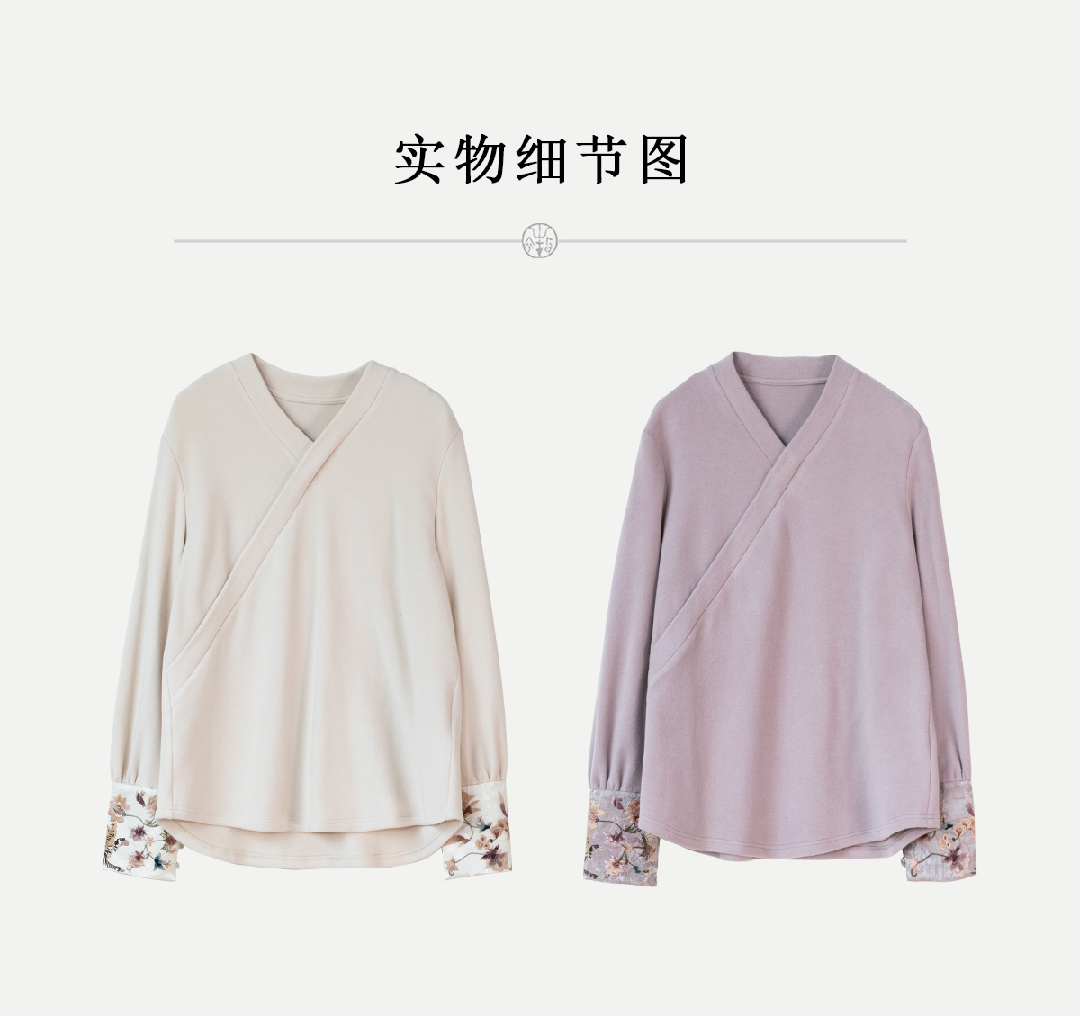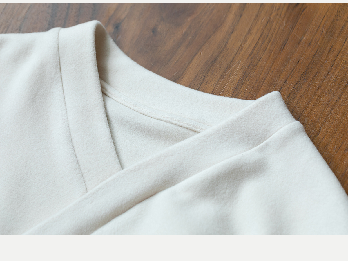 牧衣游原创 机绣绒感T恤女冬季新款柔软亲肤保暖百搭V领上衣 苏格