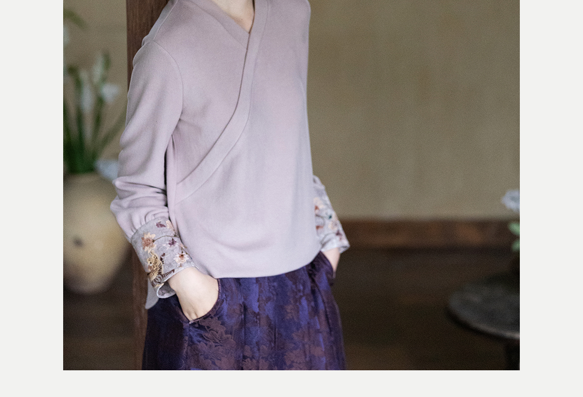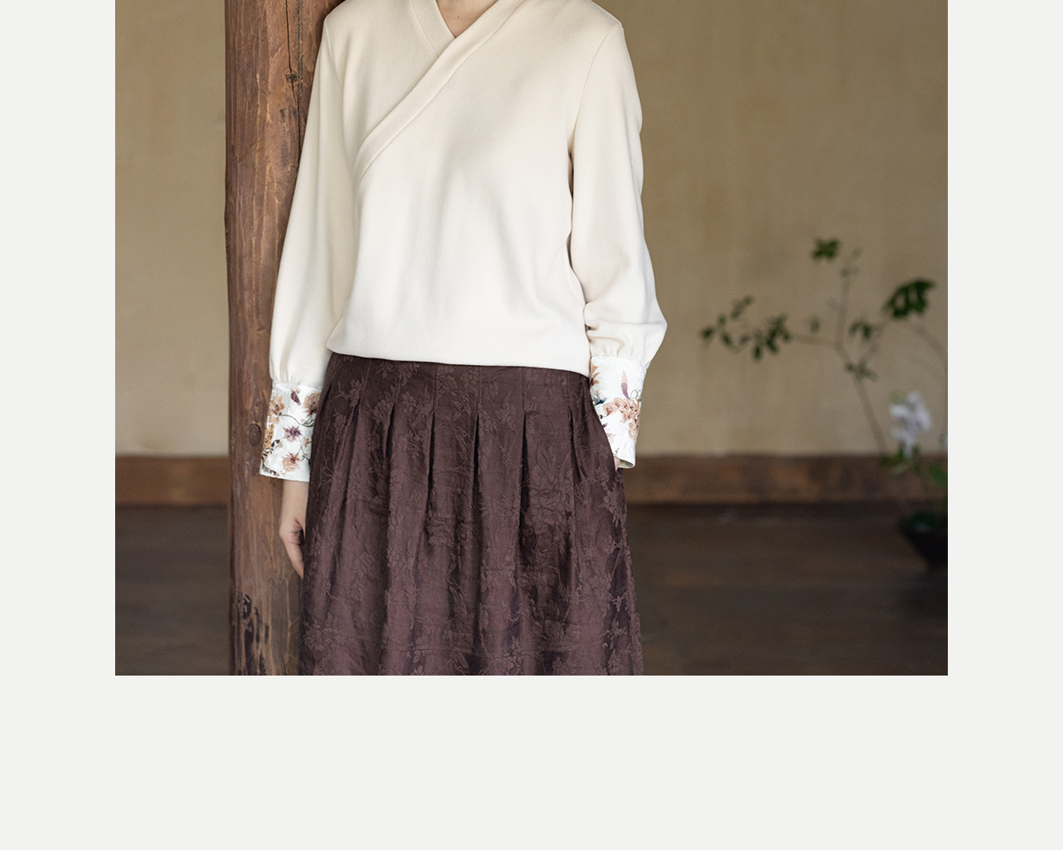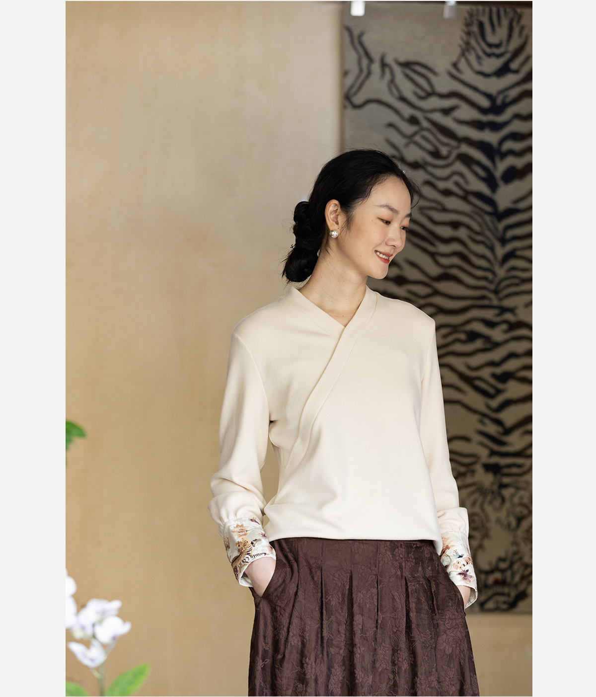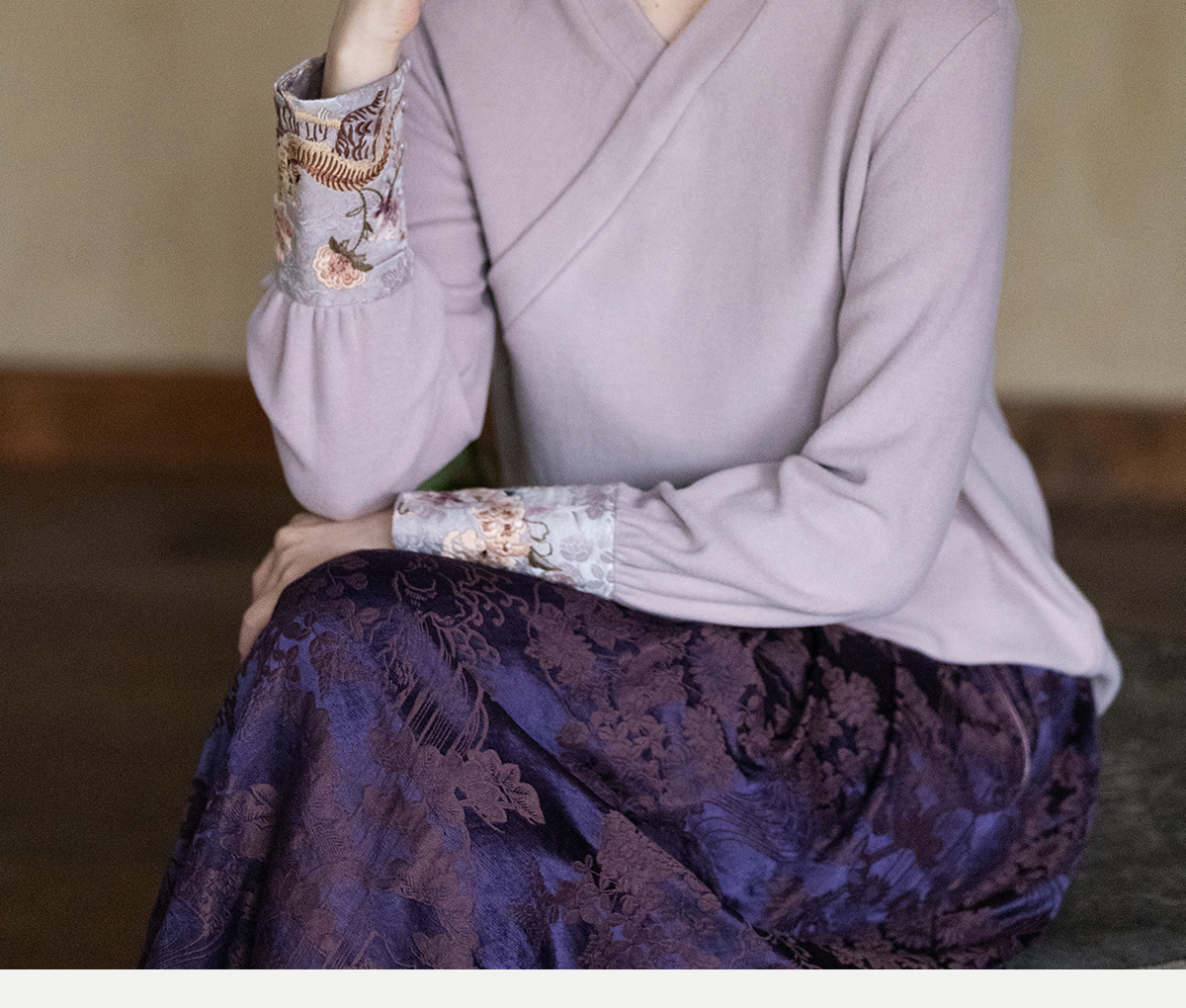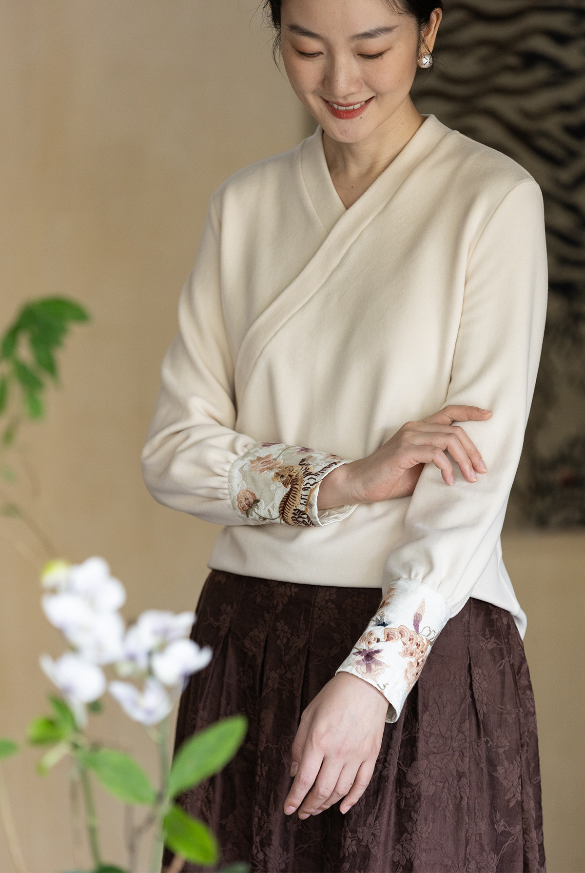 牧衣游原创 机绣绒感T恤女冬季新款柔软亲肤保暖百搭V领上衣 苏格