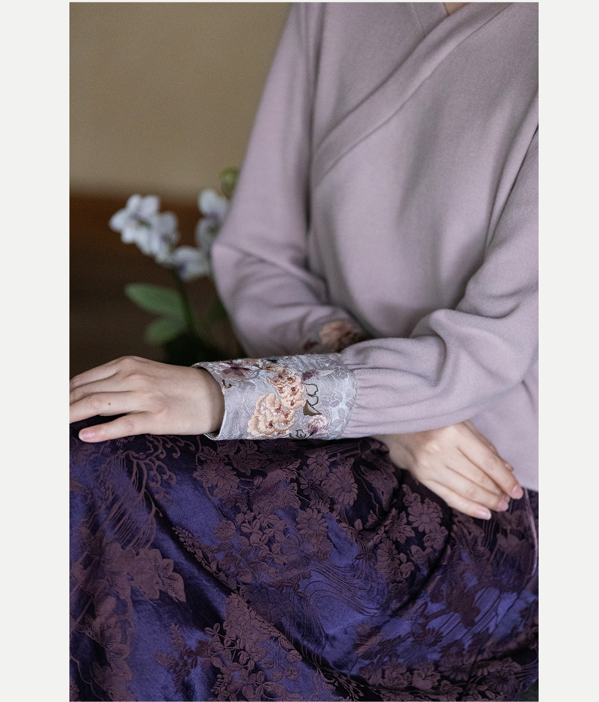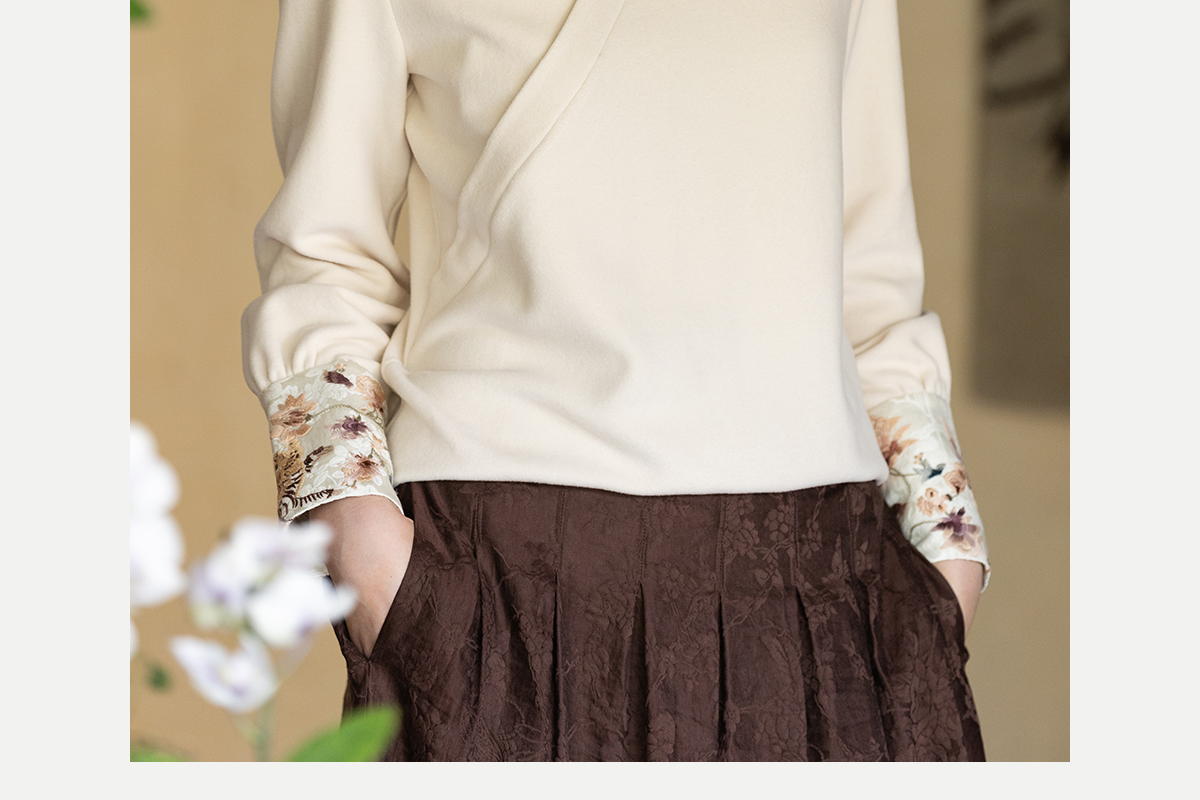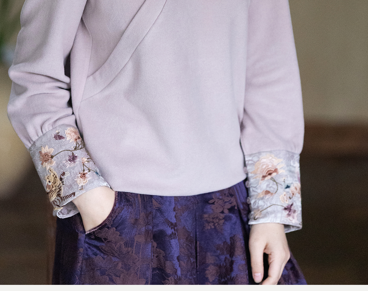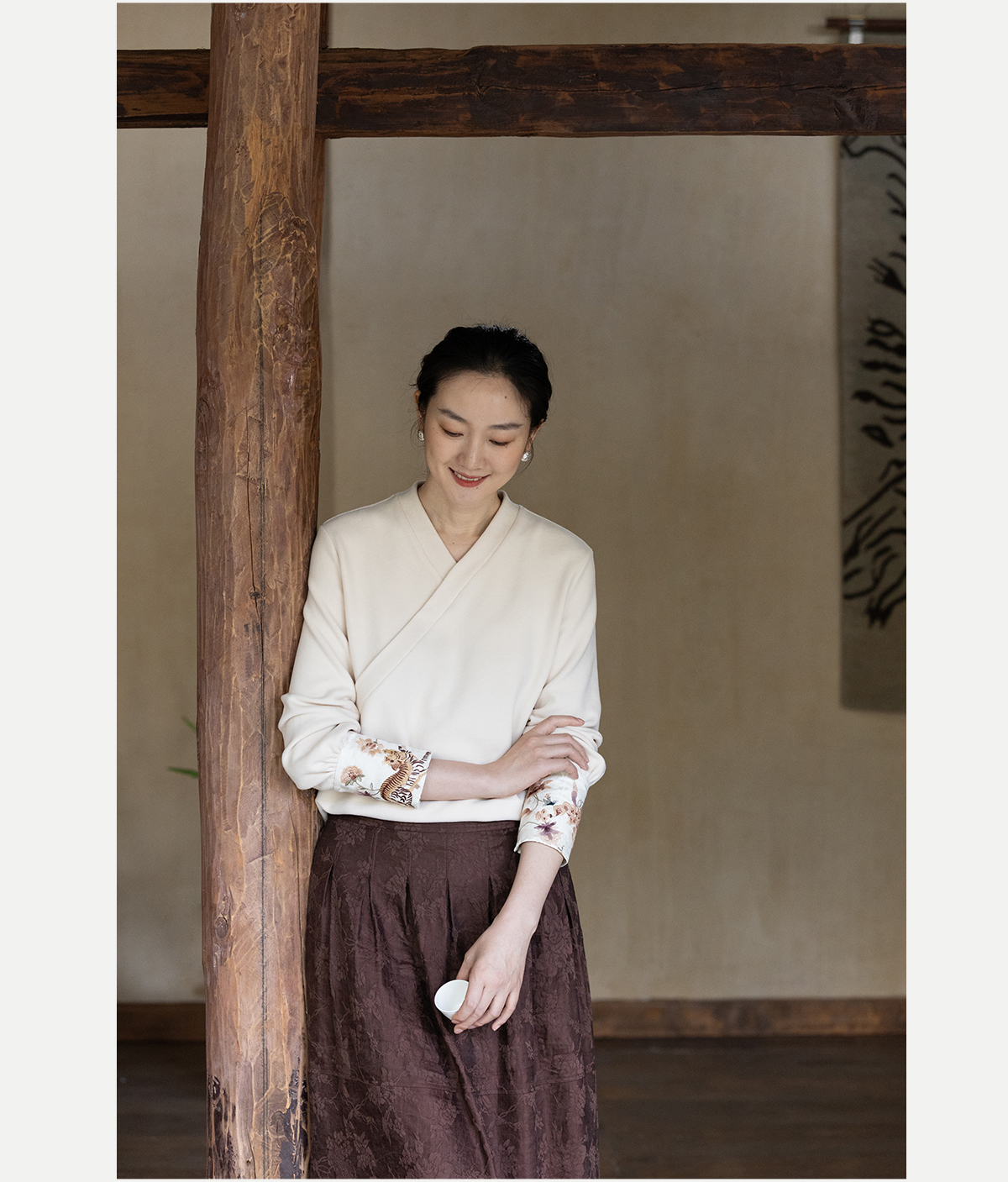 牧衣游原创 机绣绒感T恤女冬季新款柔软亲肤保暖百搭V领上衣 苏格