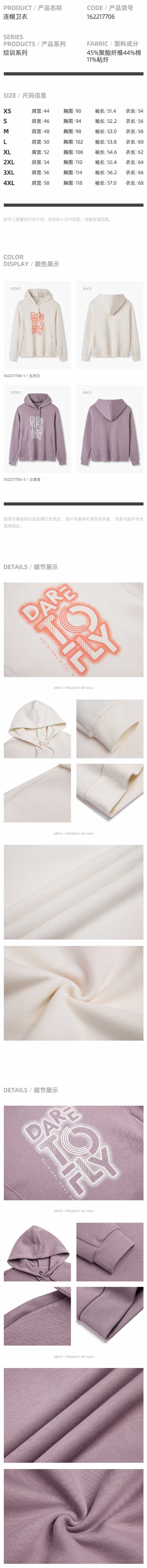 安踏连帽卫衣女2022春季新款休闲运动上衣162217706-1/3/4