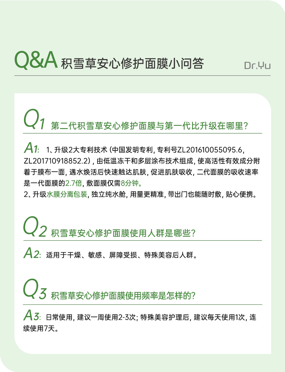 玉泽积雪草安心修护面膜敏感肌保湿修护屏障舒缓