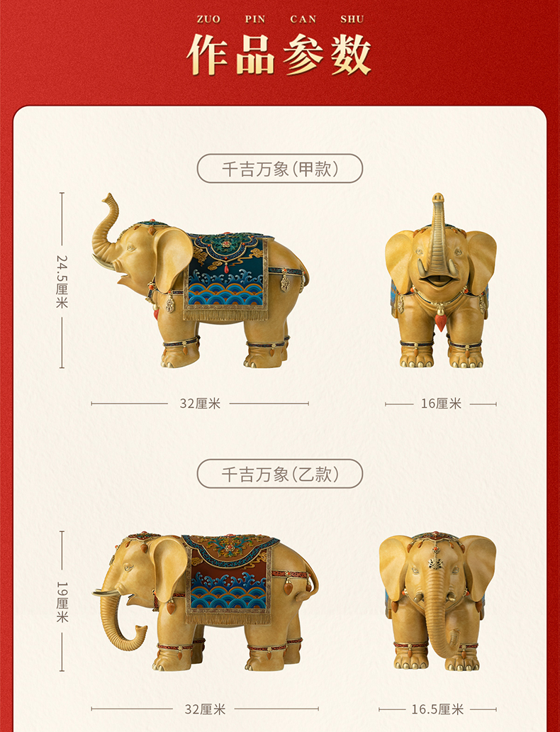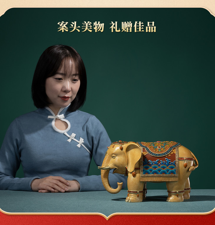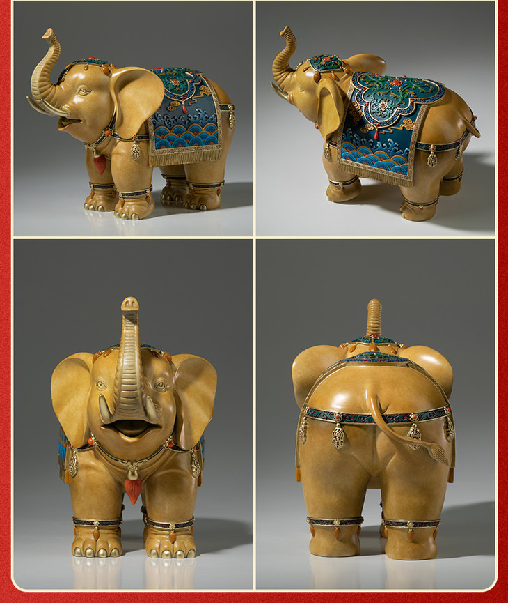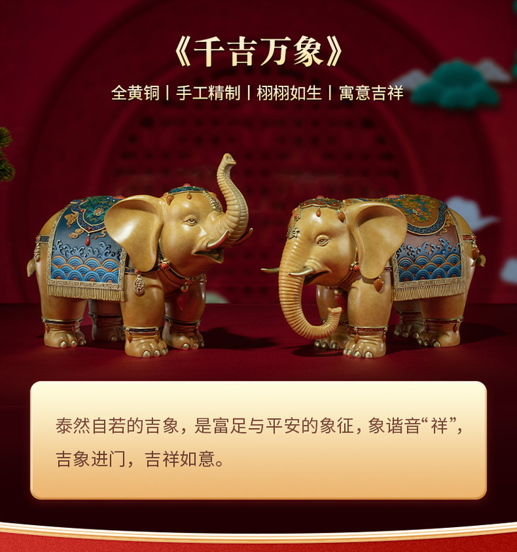 铜师傅 铜摆件《千吉万象》大象客厅桌面电视柜创意中式家居装饰