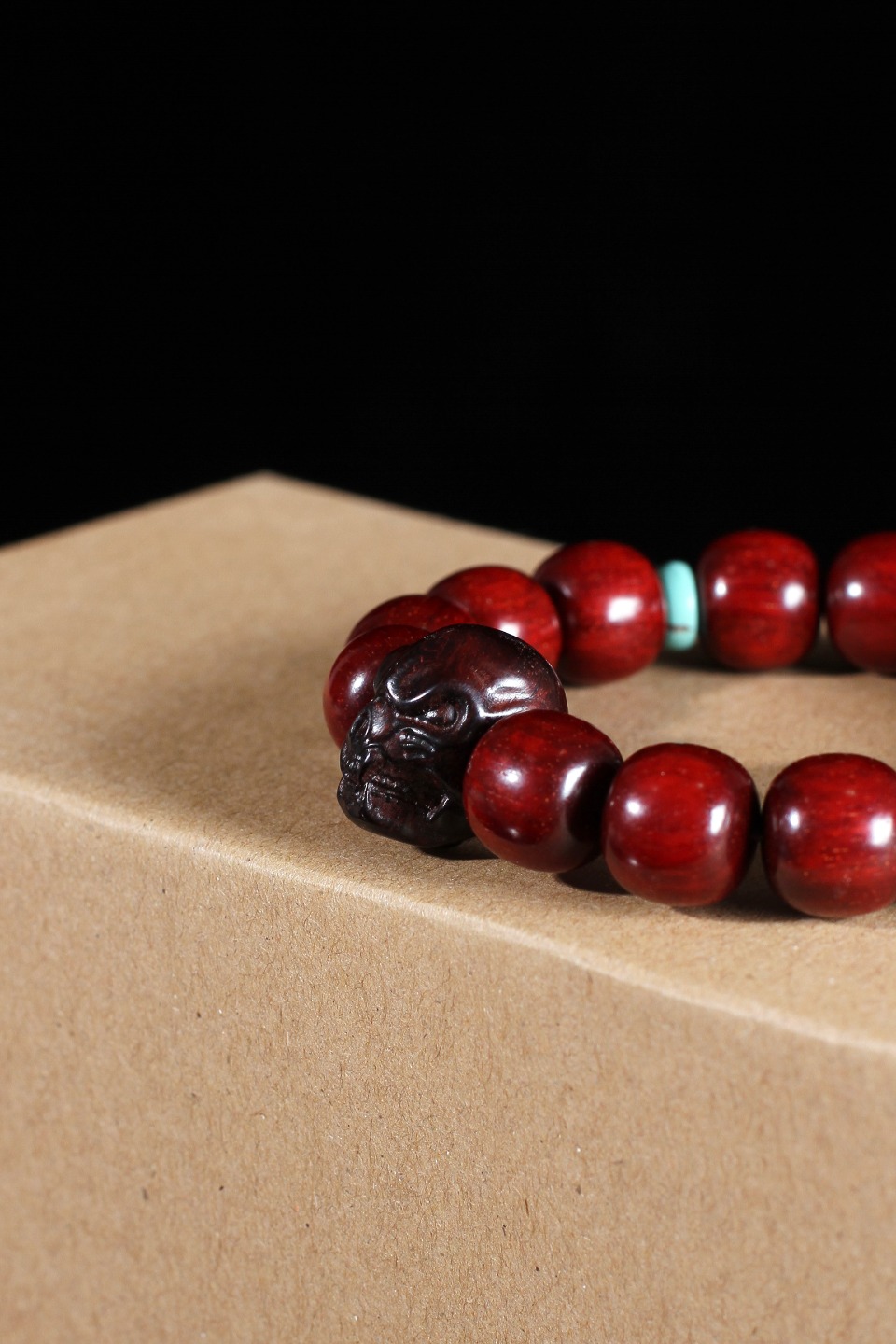 搭配:印度小叶紫檀为主,搭配紫檀镶银六字真言,绿松隔片,骷颅头。