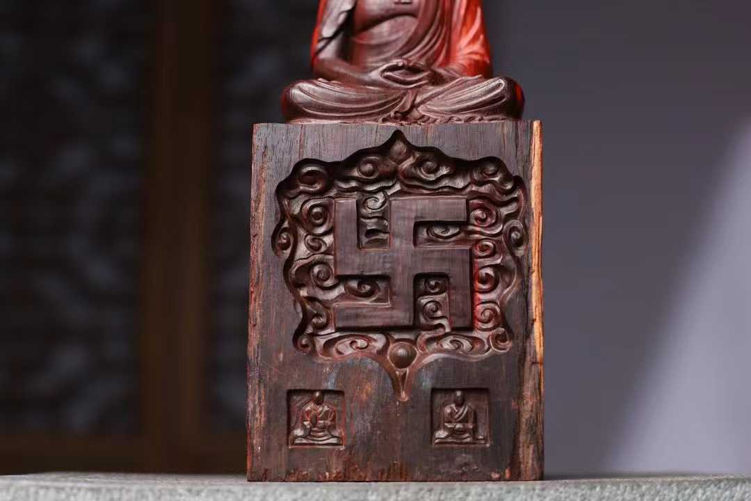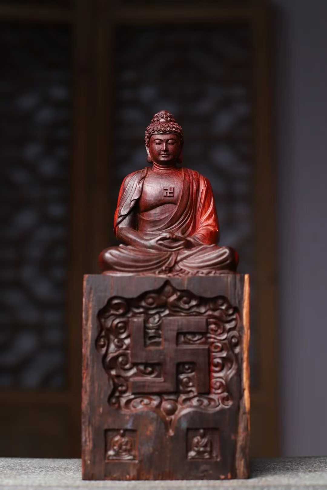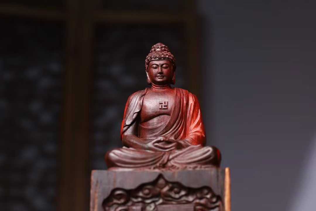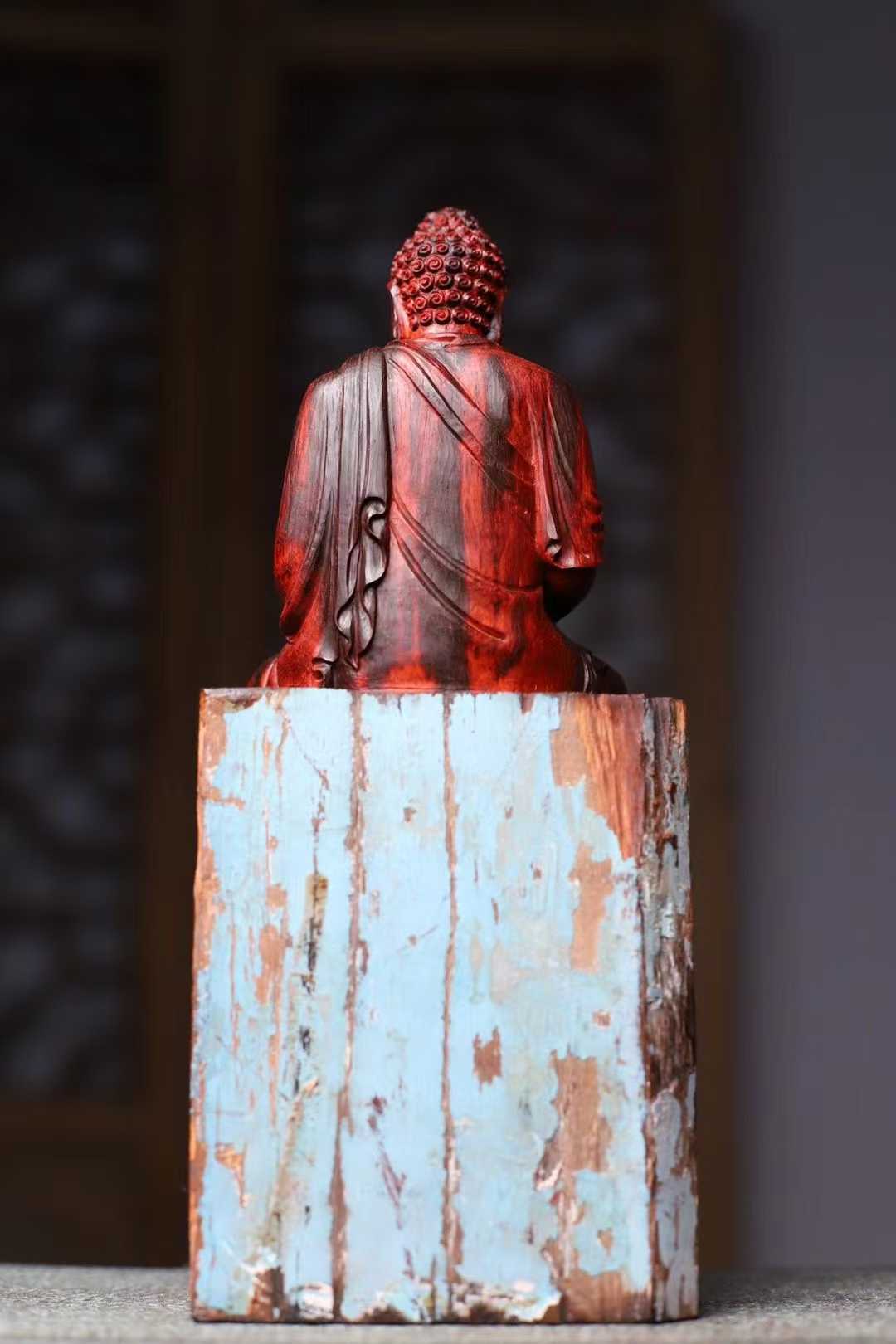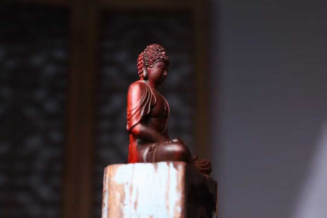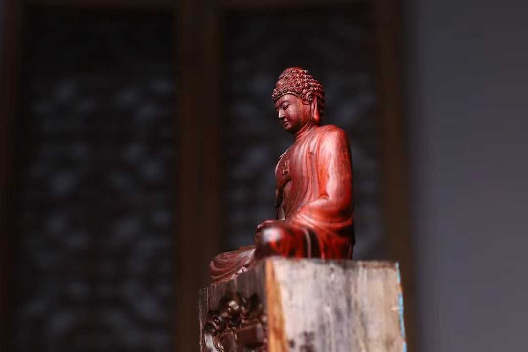 印度小叶紫檀,高油密鸡血红,拆房老料,释迦摩尼 大日如来佛